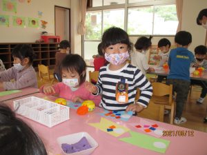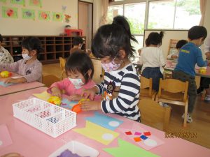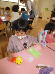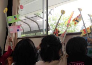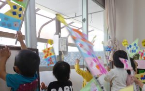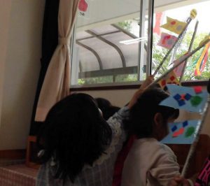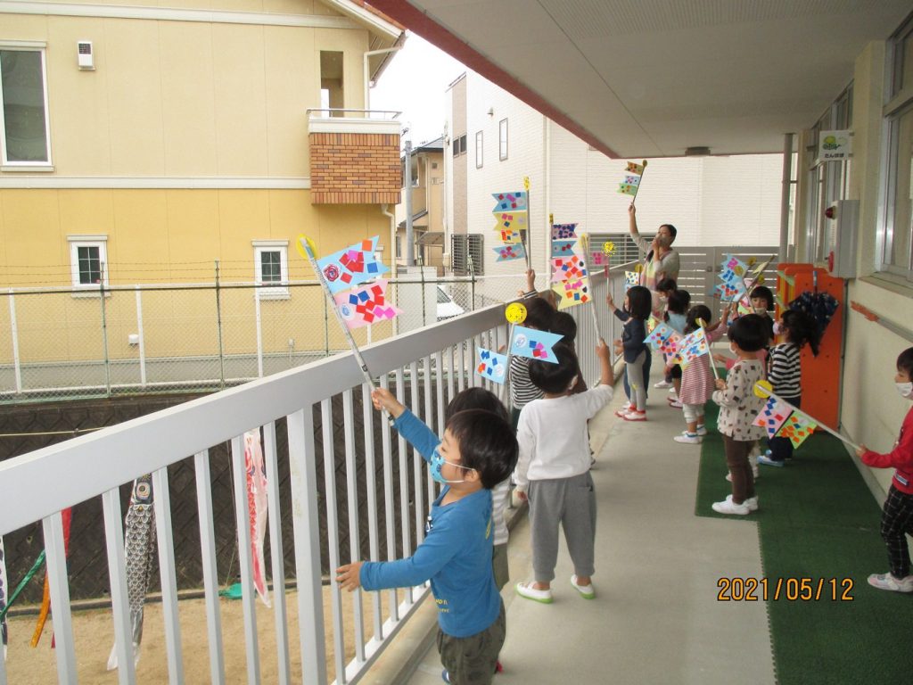 園庭で泳ぐこいのぼりも、とてもうれしそうに