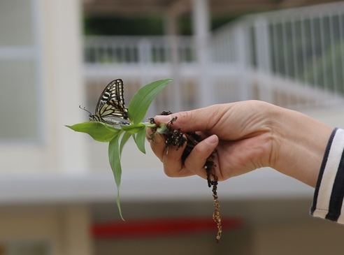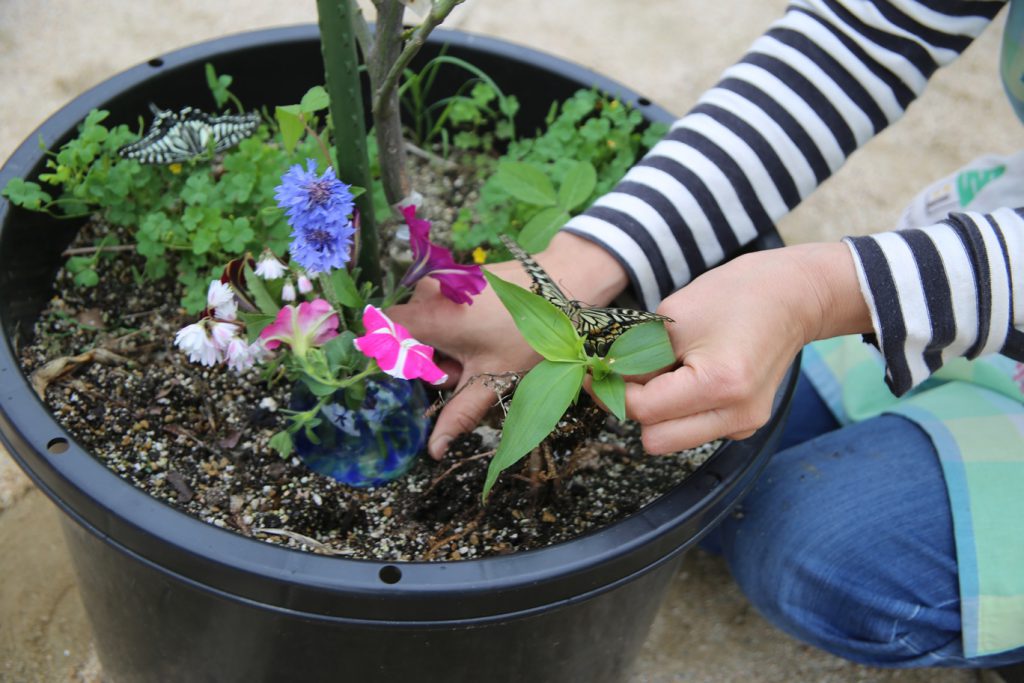 そこで、ミカンの木で蛹になったのを見計らい、