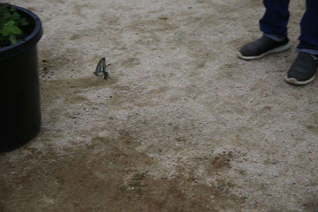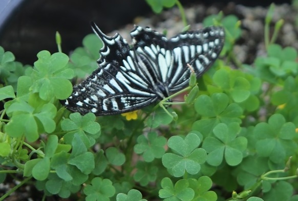 そこに、アゲハチョウが