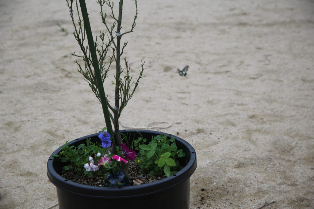 アゲハチョウのために植えているミカンの木。