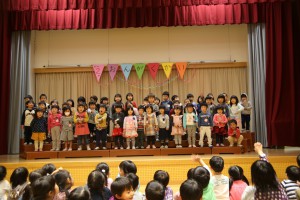 前回の経験から年少さんも、動じることなくステージ上へ…