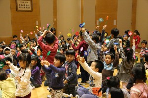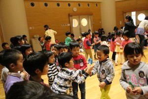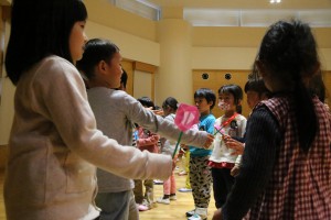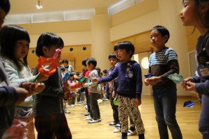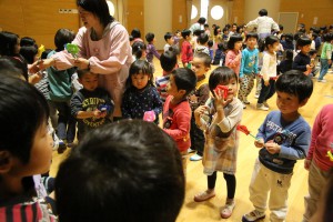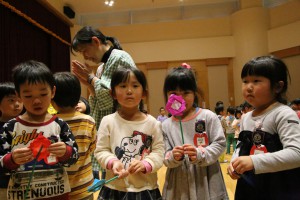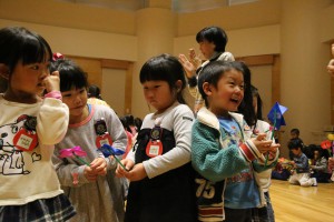 手作り楽器を使った音楽遊びを十分に満喫した年中さん、年少さん