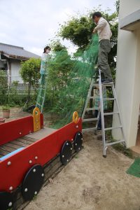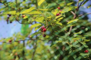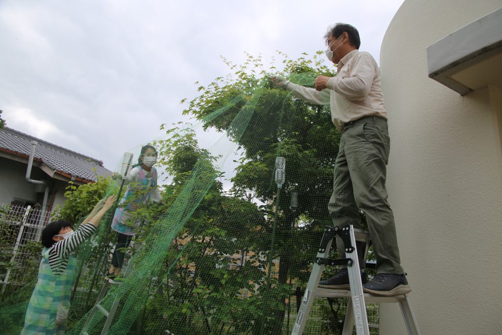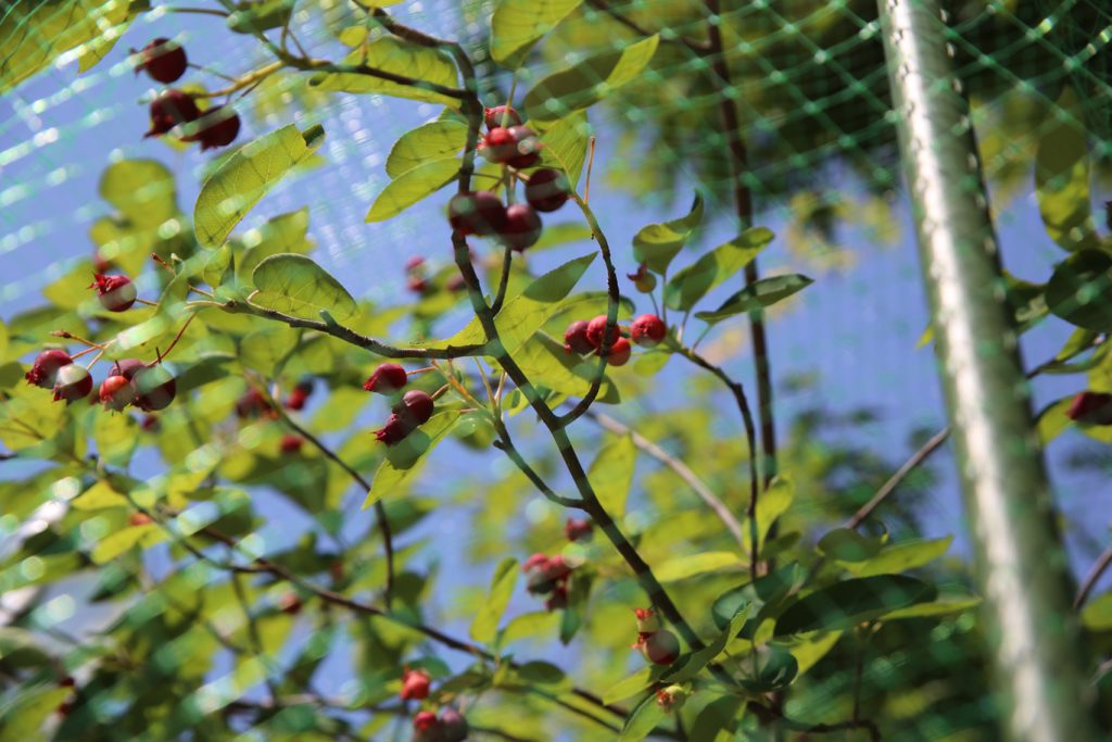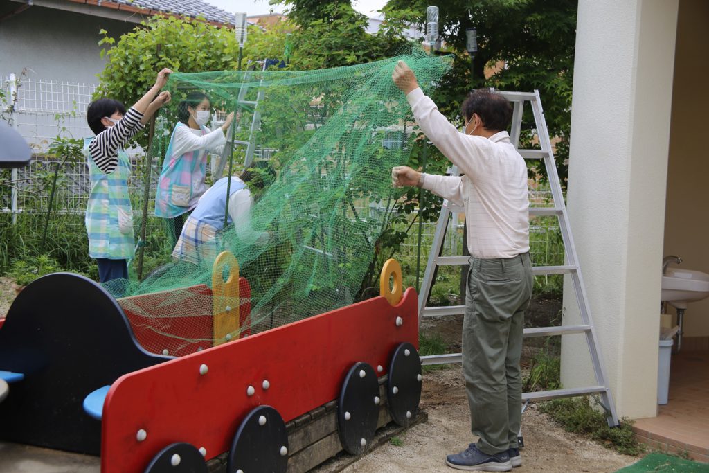 2021.05.24 全体 みんなのジューンベリー 2021年 5月 幼稚園に、卒園児が記念樹として残してくれたジューンベリーの木があります。 例年よりかなり早く梅雨入りした今年ですが、ちゃんと、季節を間違えずに、たくさんの実をつけてくれました。 木の実を、鳥が啄ばむ様子もいいものですが…この木は、子どもたちのもの…(*^_^*) ベリーが、子どもの口に入るように、網で覆いました。 網の中で、きれいに熟していますよ~ 一覧に戻る