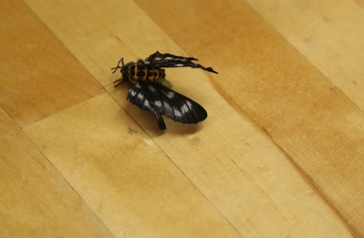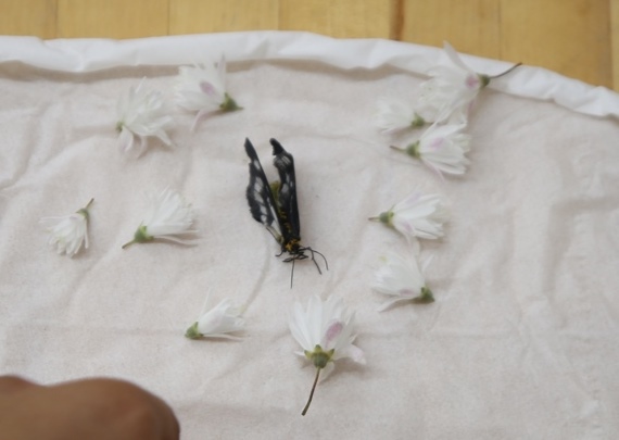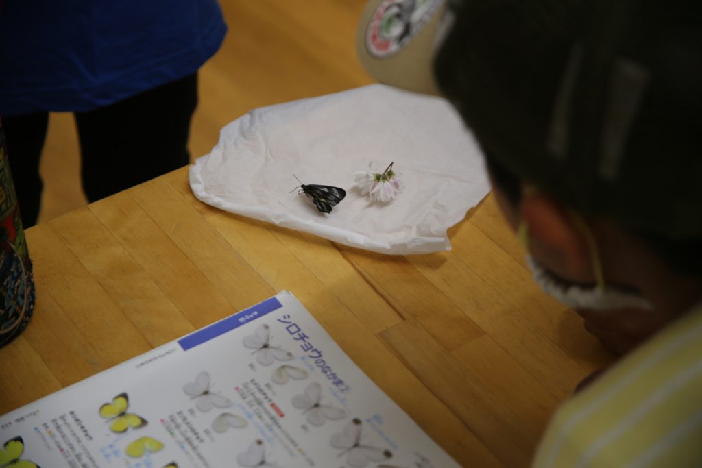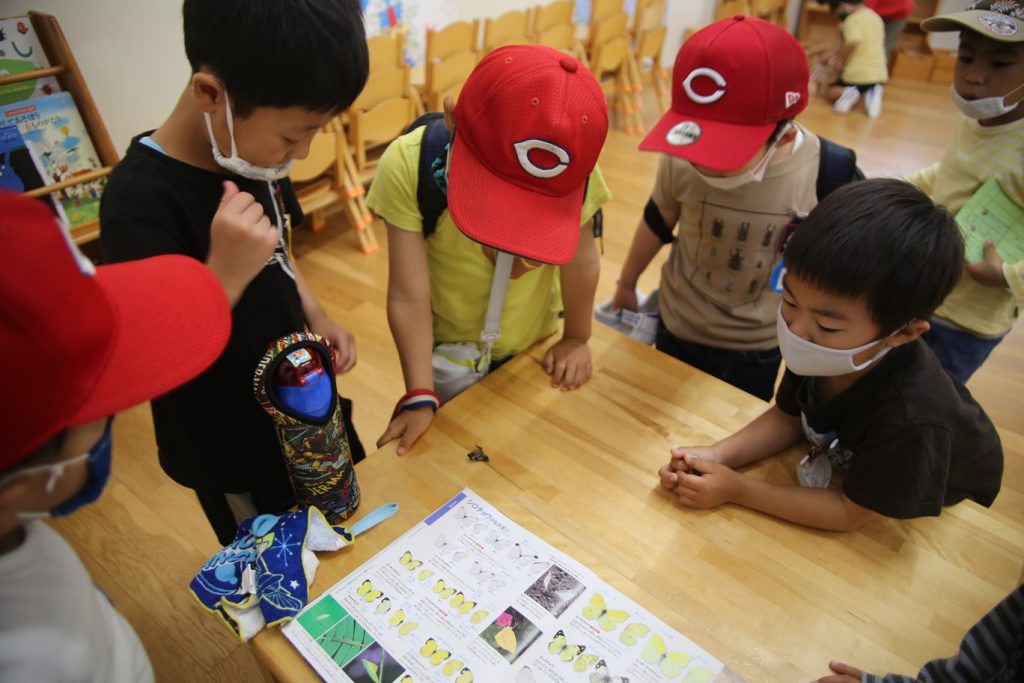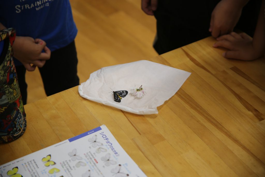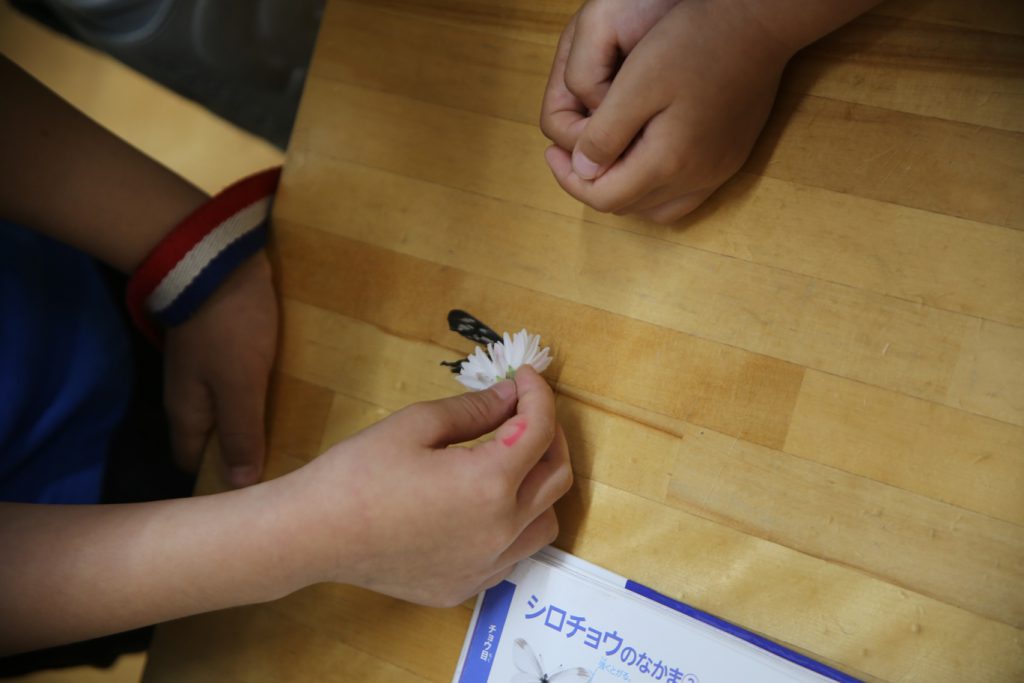 登園中、弱りかけた蝶を見つけてきた子ども。