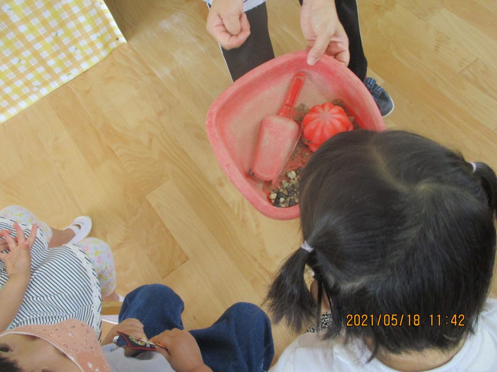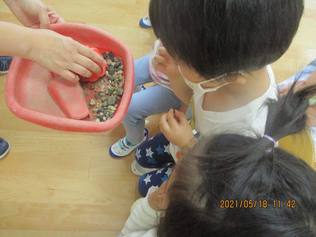 年少さん、戸外遊びの中で、