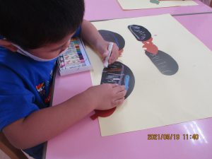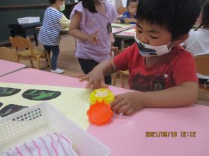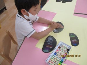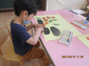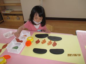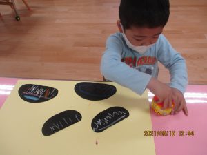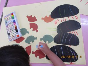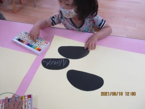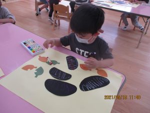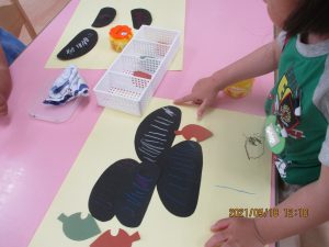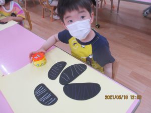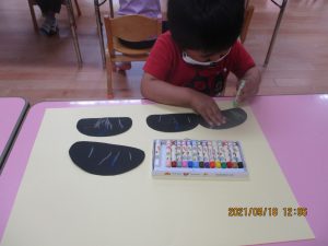 色画用紙で作ったダンゴムシを見せると…