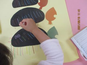 仕上げに、クレパスで、