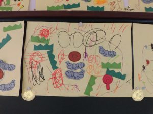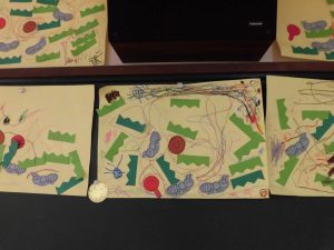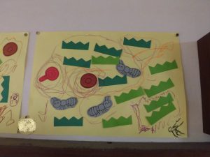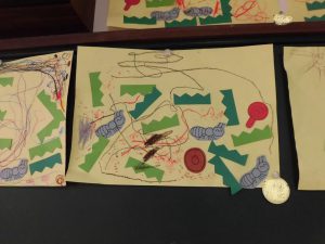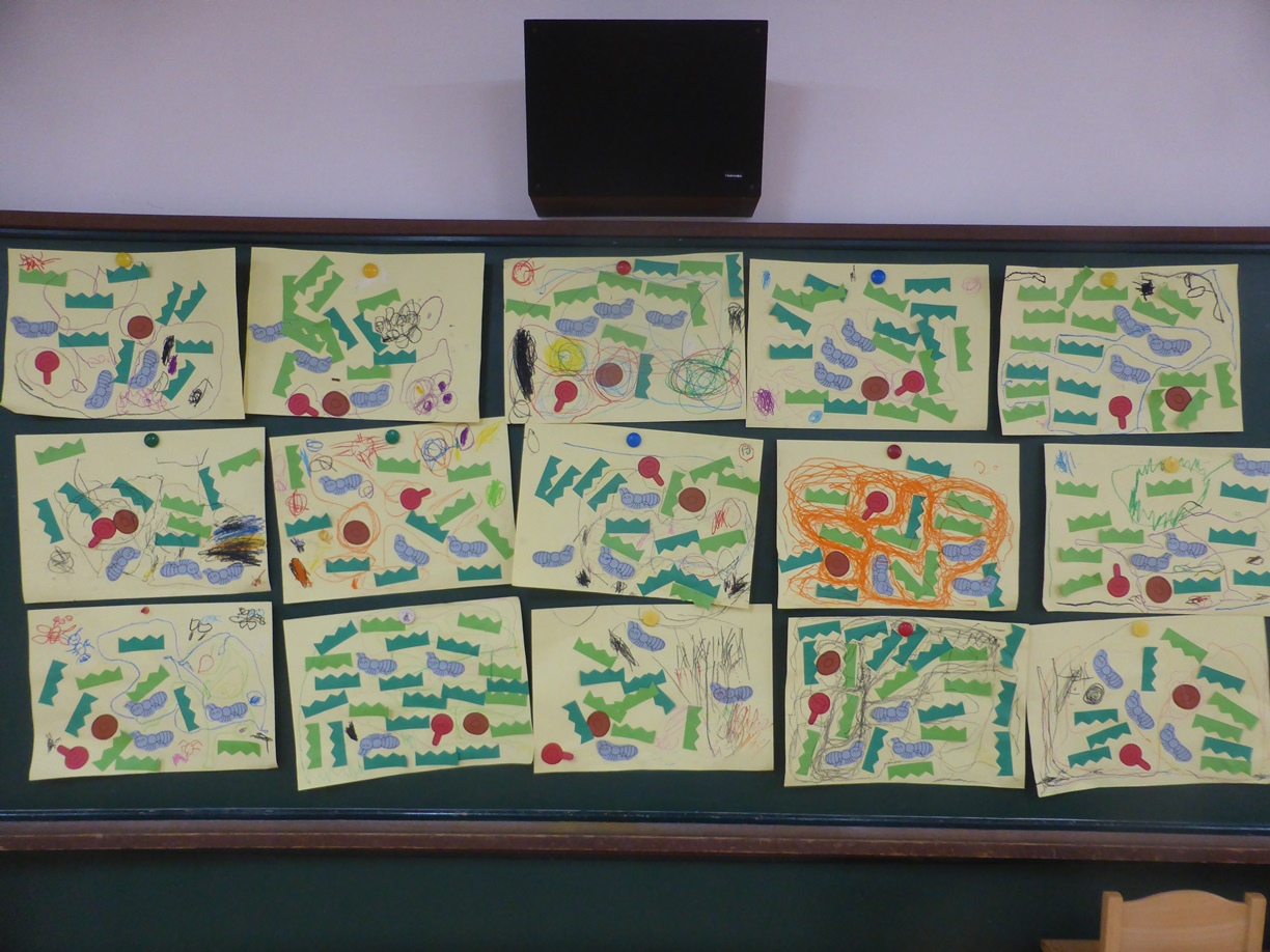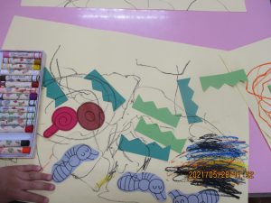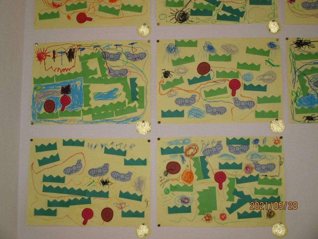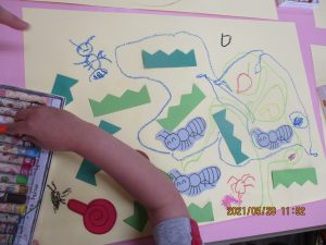 クレパスで、アリさんの歩いた散歩道を描いたり、