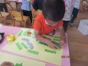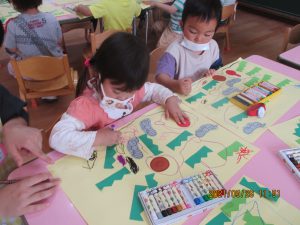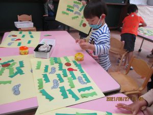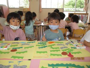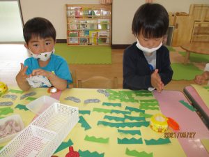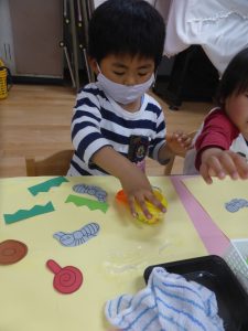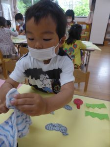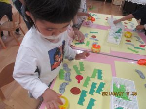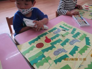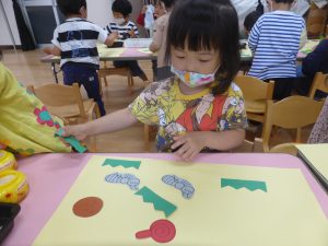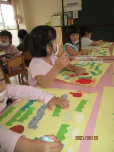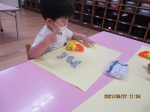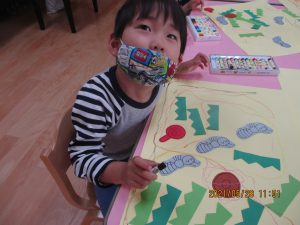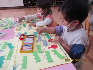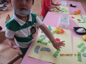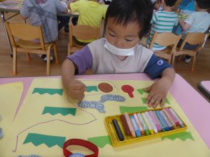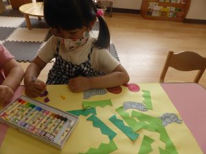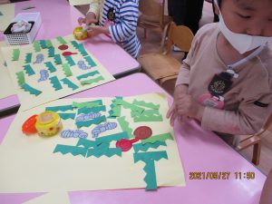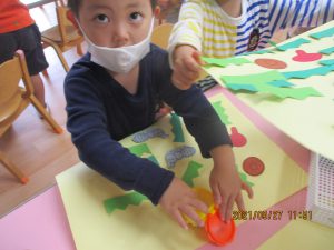 のりや、クレパスを使って遊ぶと、