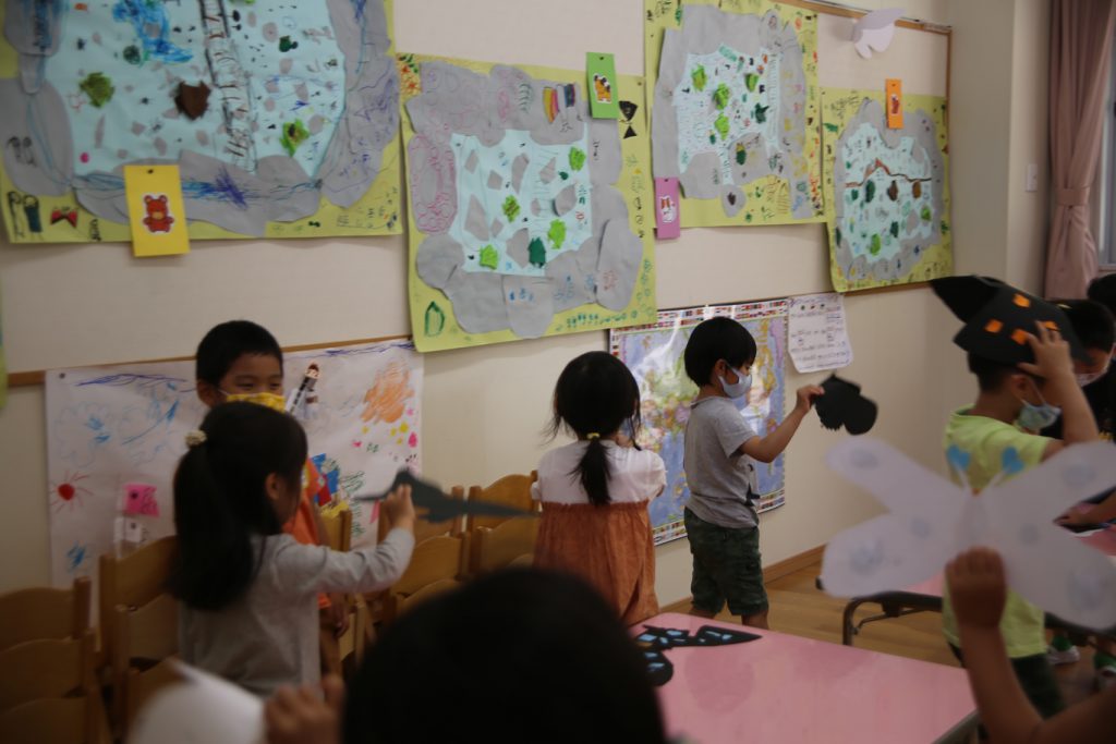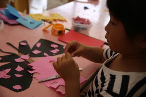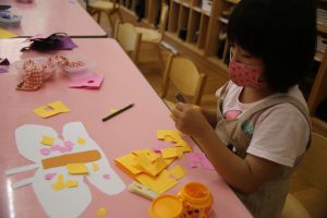 壁面のビオトープ製作に描かれた『フジバカマ』の
