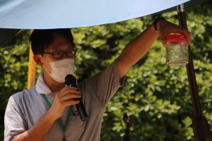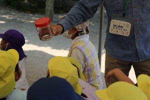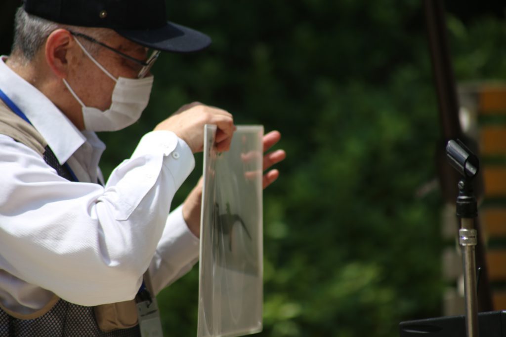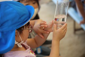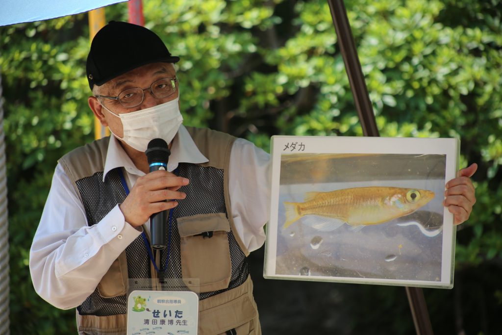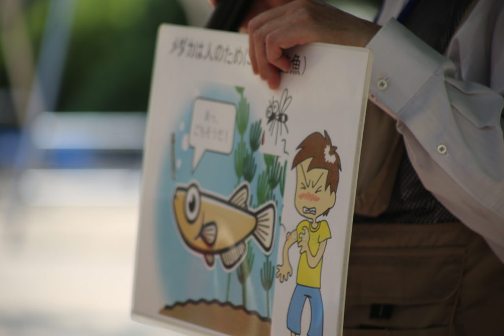 メダカの目ってこんなに大きいんだよ(先生、実演)