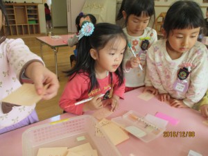 これも、年長さんの焼きいも屋さんの遊び方からヒントを得て。