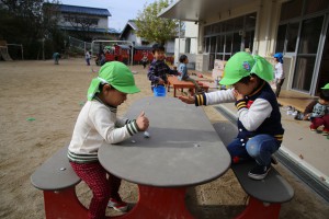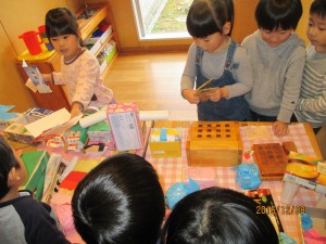 年長児から遊び方をまねて進めていこうとするようになってきました。