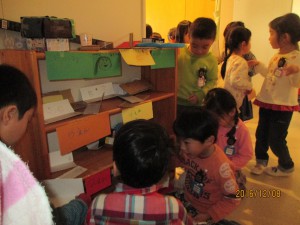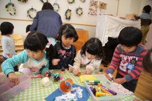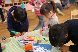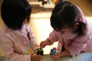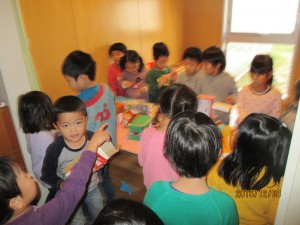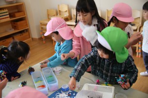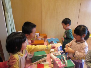 色々な仕事を上手に分業して共同的な遊びになってきた年中児です。