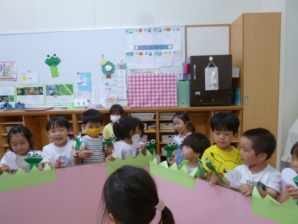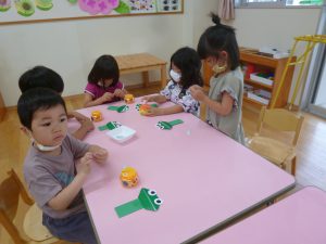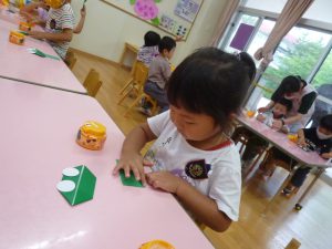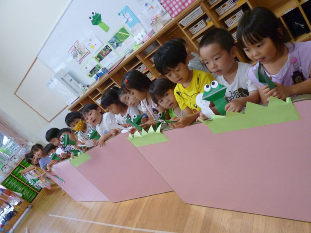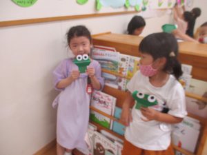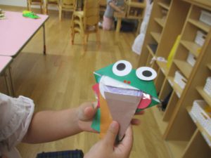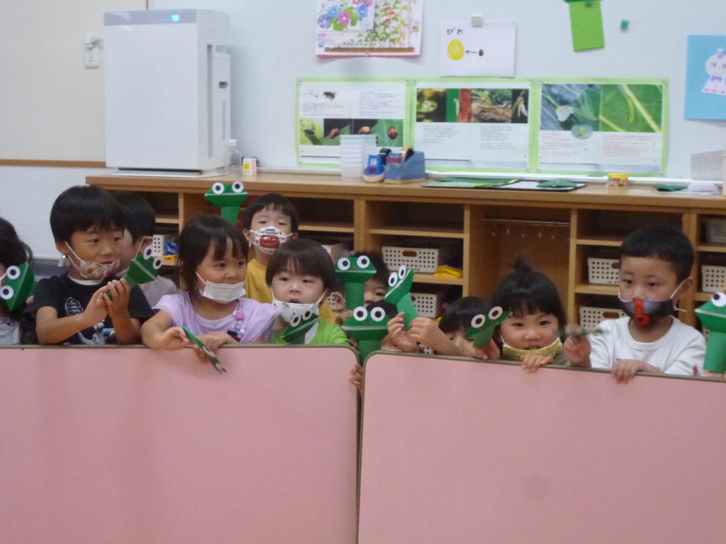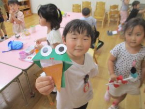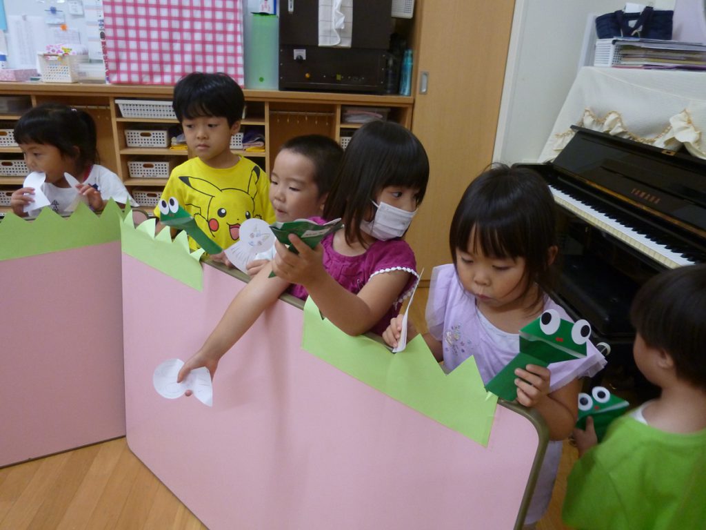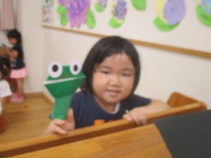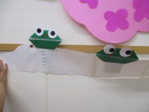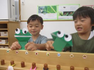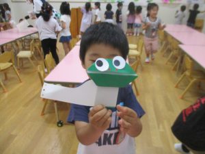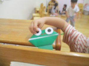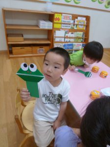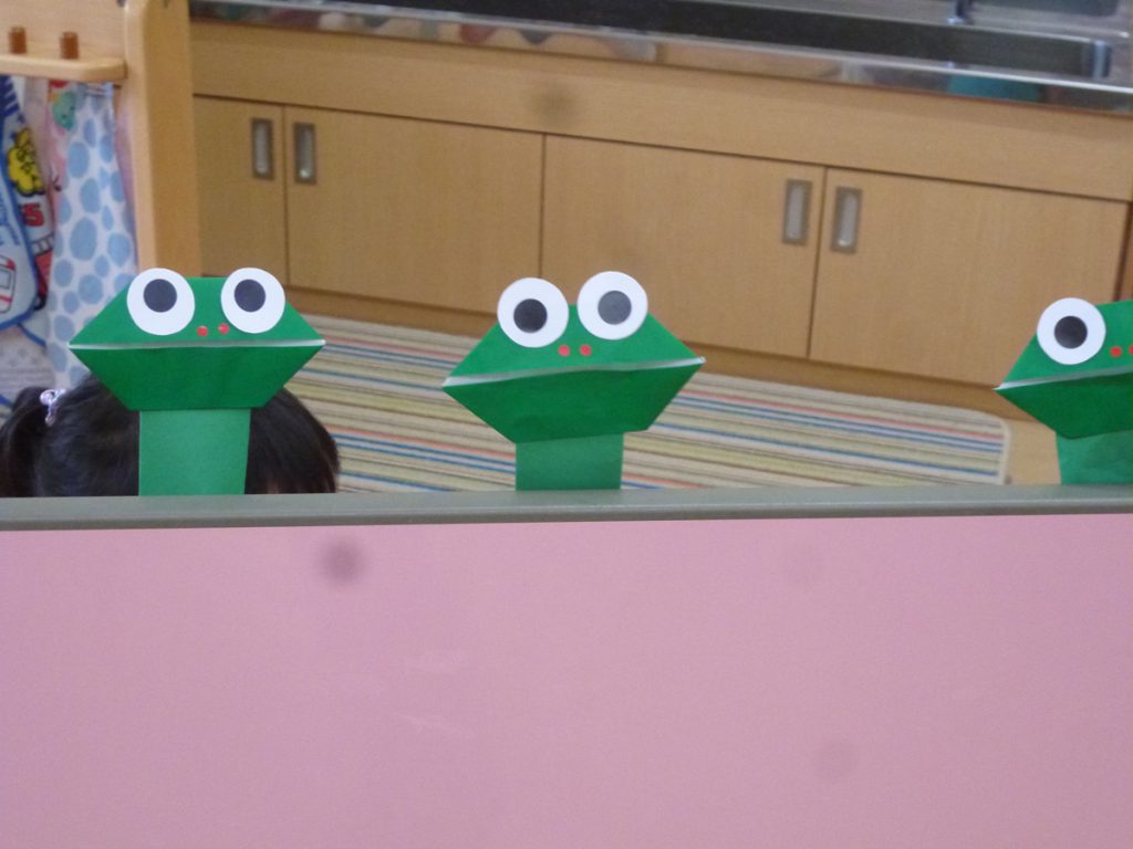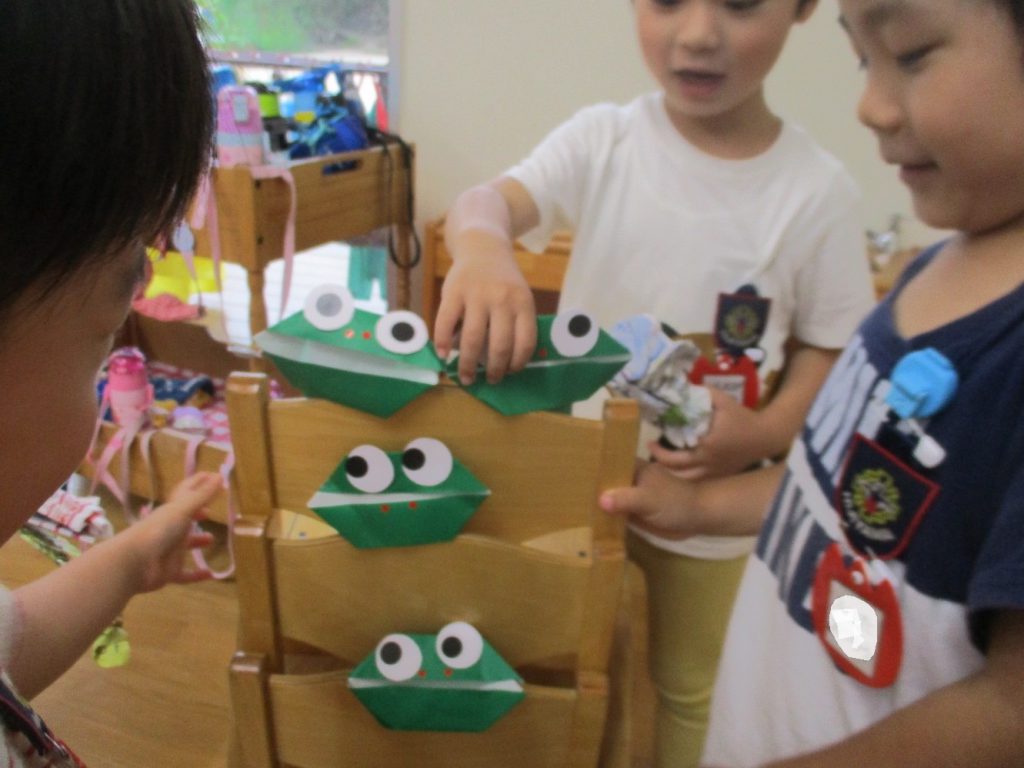 年中さん、折り紙でカエルを折ったのね!