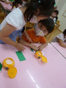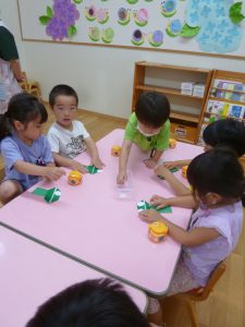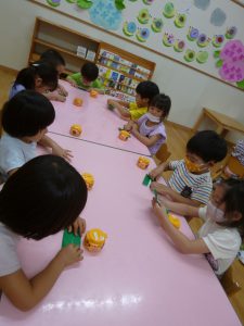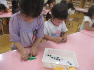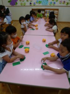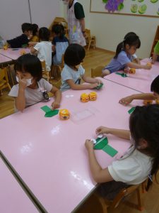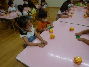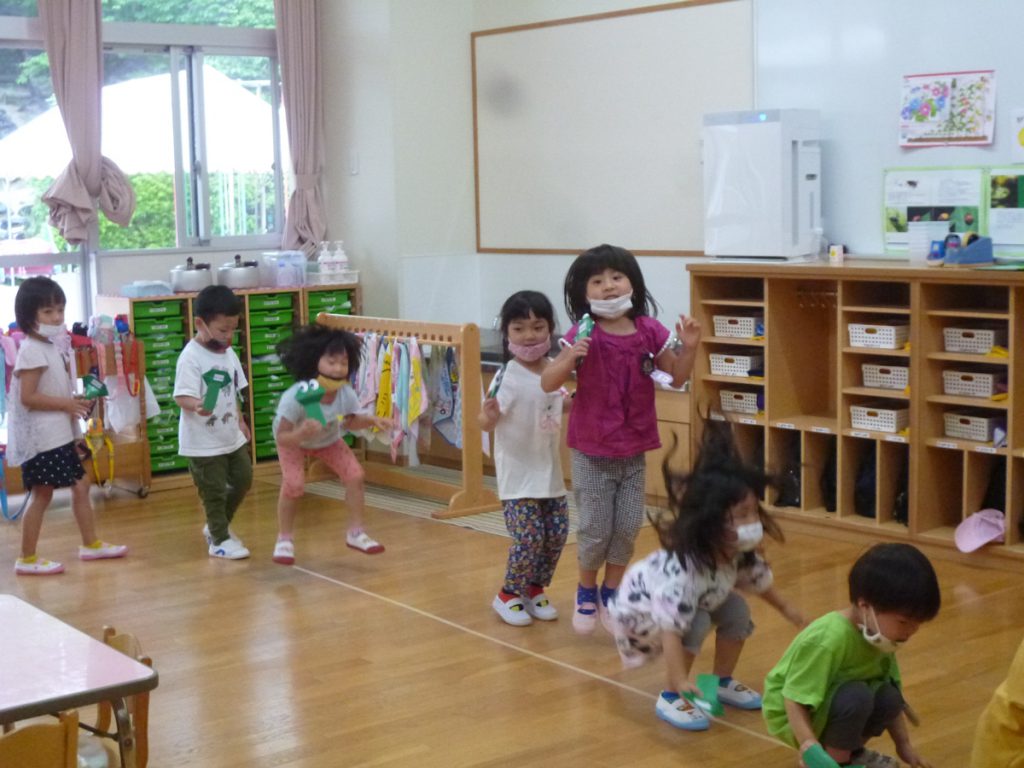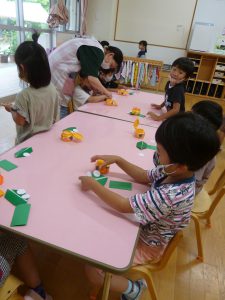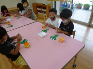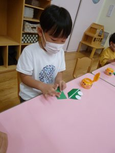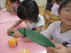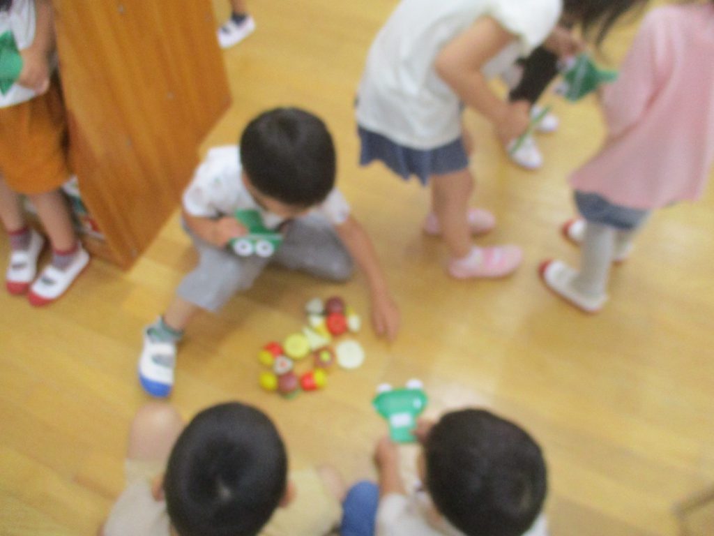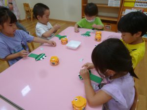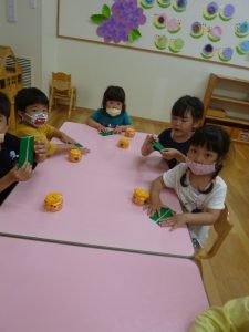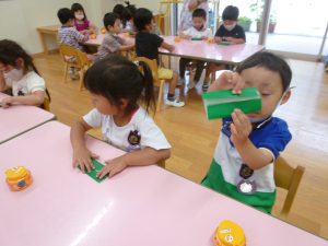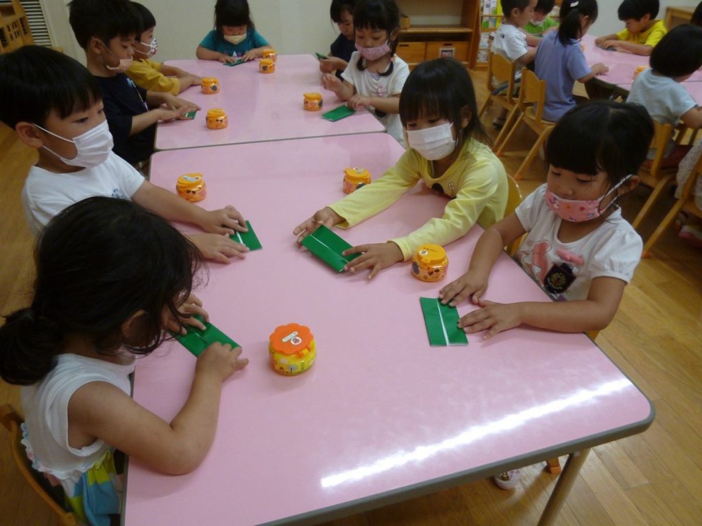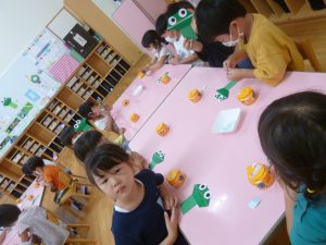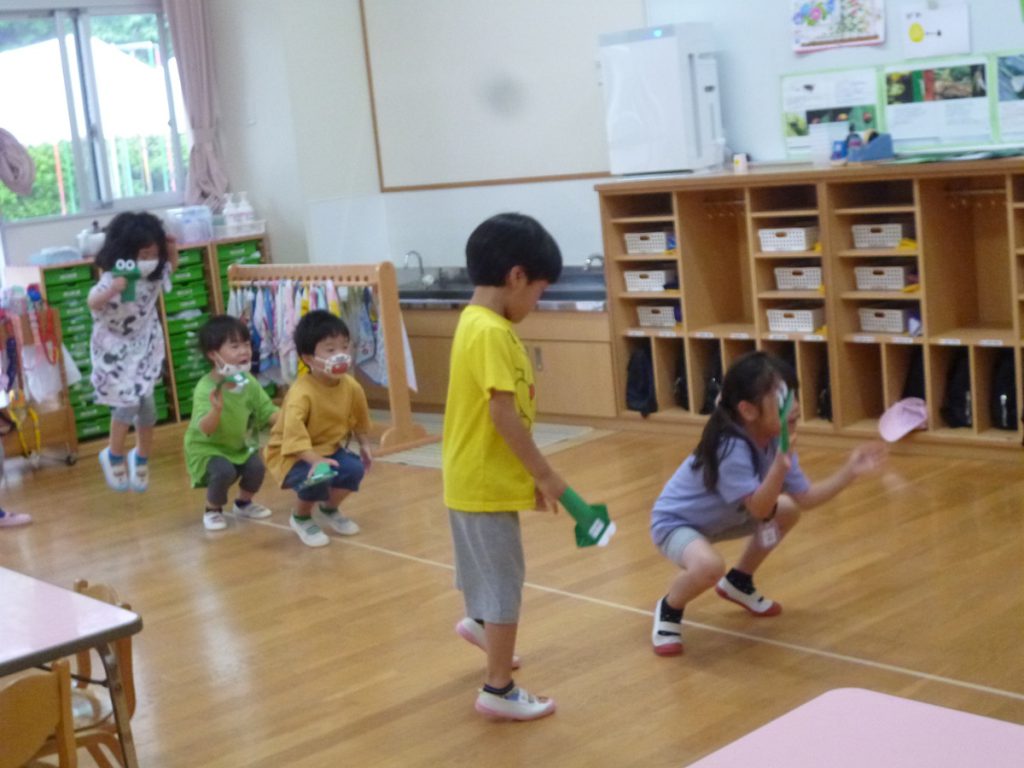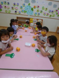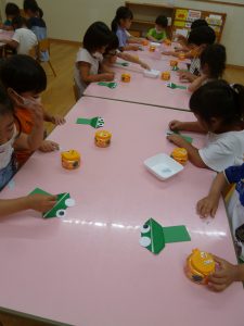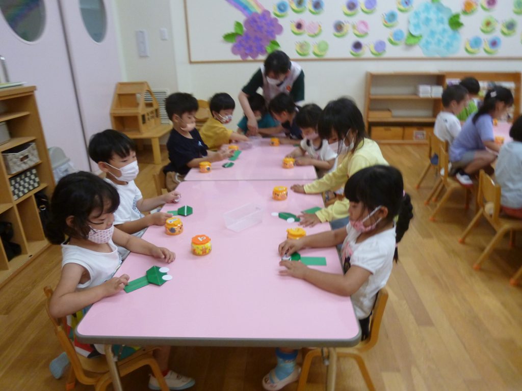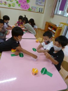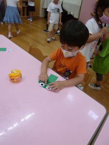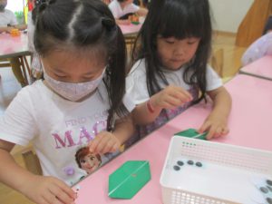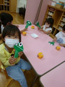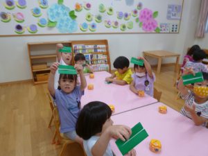 年中さん、折り紙でカエルを折ったのね!