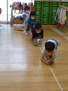 年中さんのクラスでも……ぴょこり!