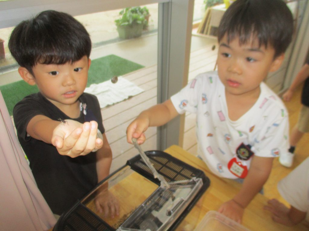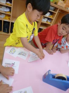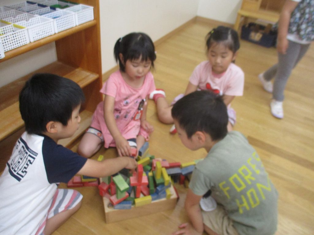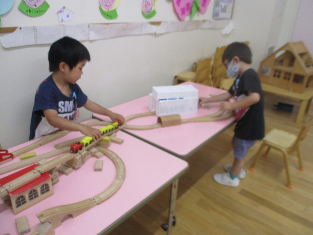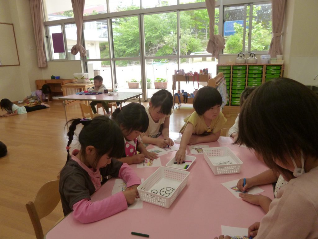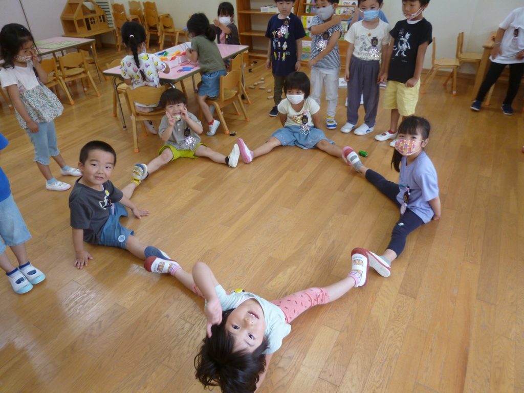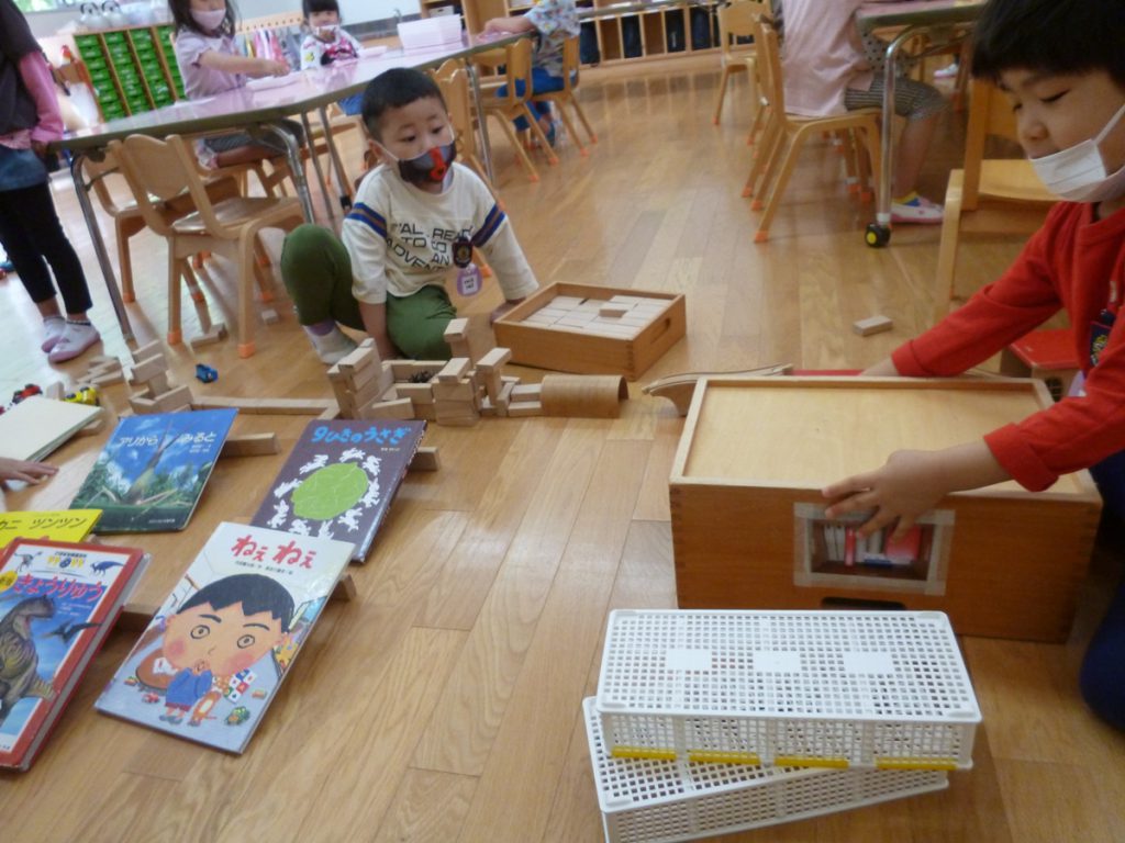 2021.07.09 年中 好きなこと、あれこれ(年中) 2021年 7月 年中さん、毎日の生活をとても楽しんでいます。 クラスの中の様子は…こんな感じです。? いち、に、の~~~ さん~~~!! 好きな汽車や積み木、塗り絵に昆虫観察。みんな、自分の興味のあることに進んで参加、とても、ゆったり過ごせているようです。 その中で、友だちとのやりとりもあって、教え合ったり、楽しさの共有があったり…。 年中さんも、大きくなりましたね~(^_^)/ 一覧に戻る