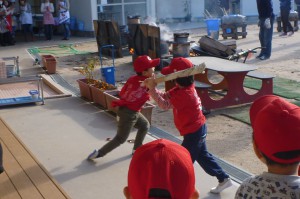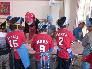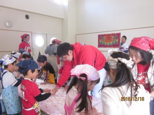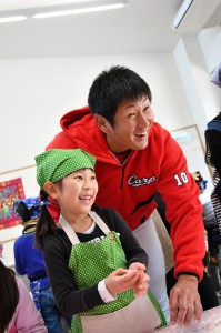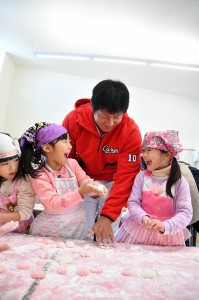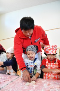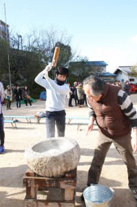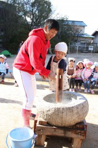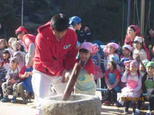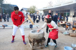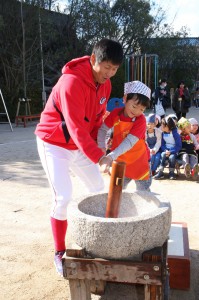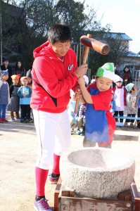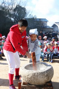 岩本選手もおもちつき、子どもも元気いっぱい声援!!