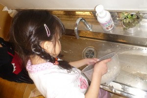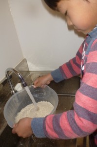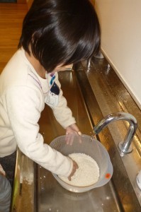 もち米を洗って水に浸しておくという仕事をしてくれました。