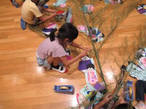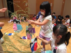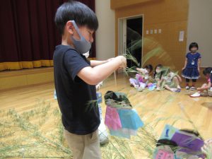 七夕 笹の飾りつけ①(年長)