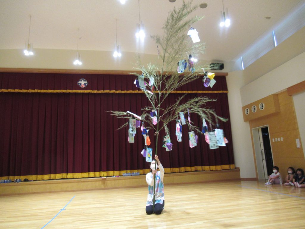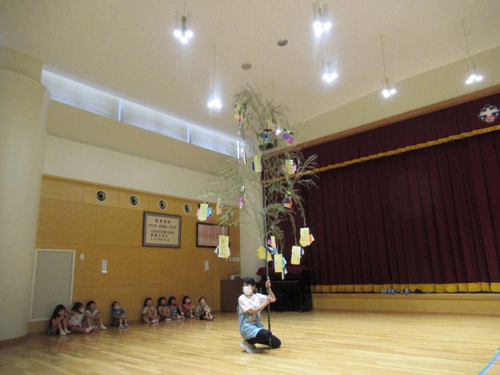 年長児が、七夕飾りつけをしました。