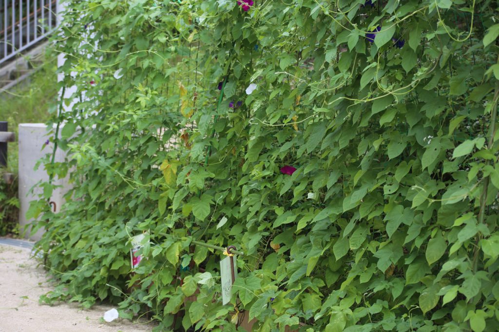 教室の壁面いっぱいに咲き誇る朝顔!!
