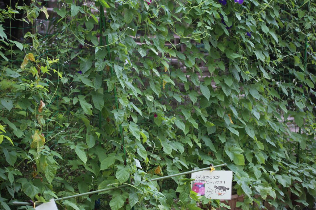 年中・年長児のペアで植えた『おはよう 朝顔』は、