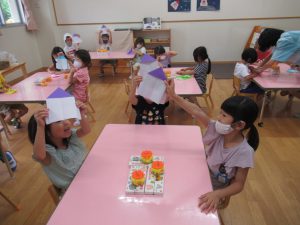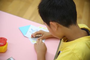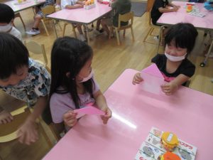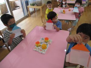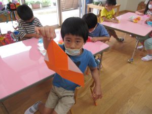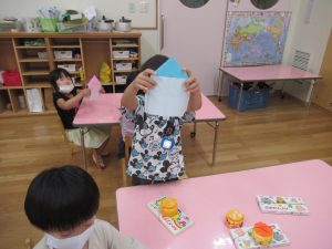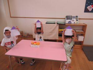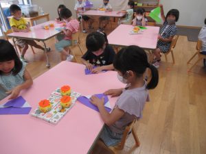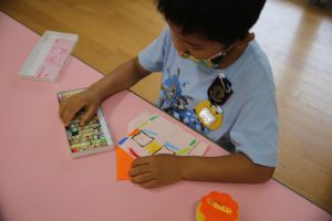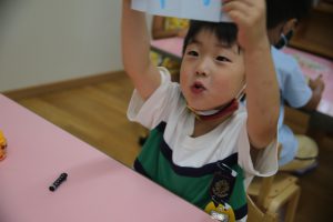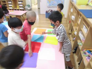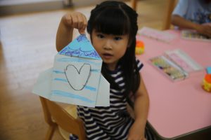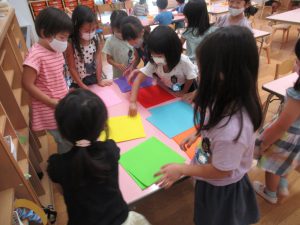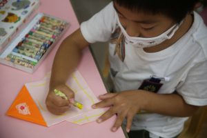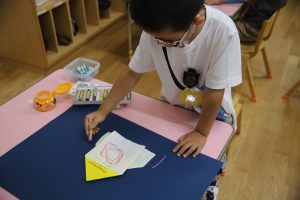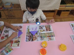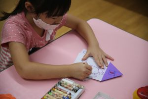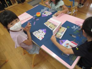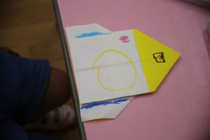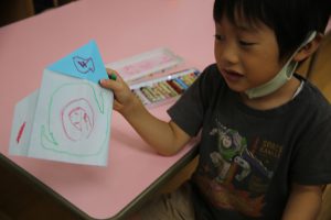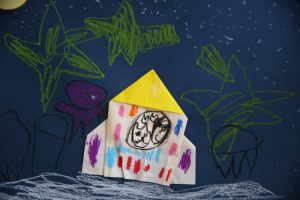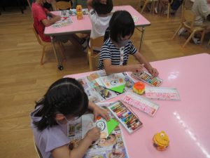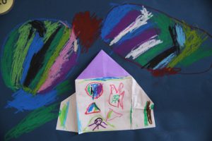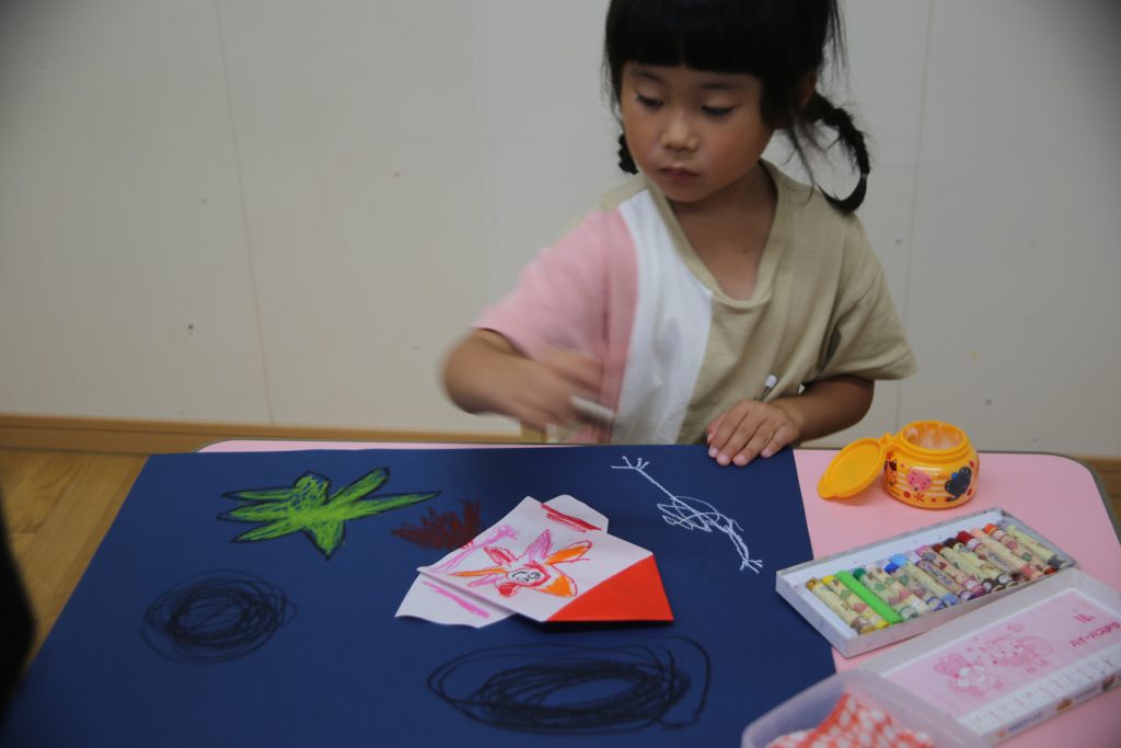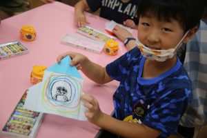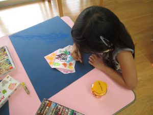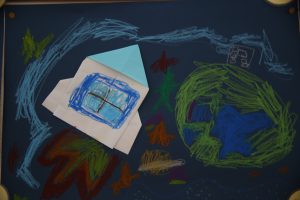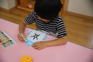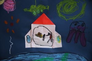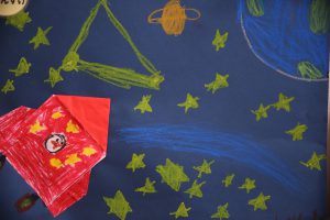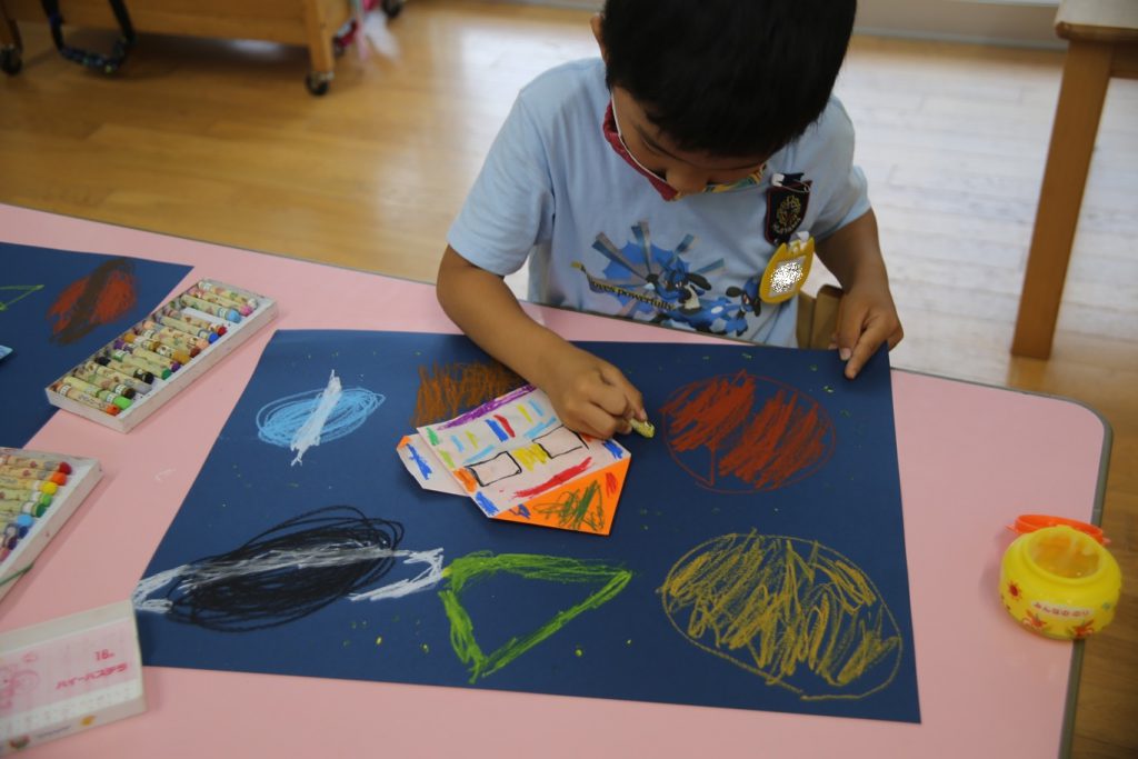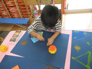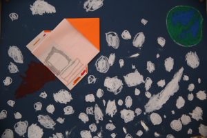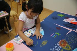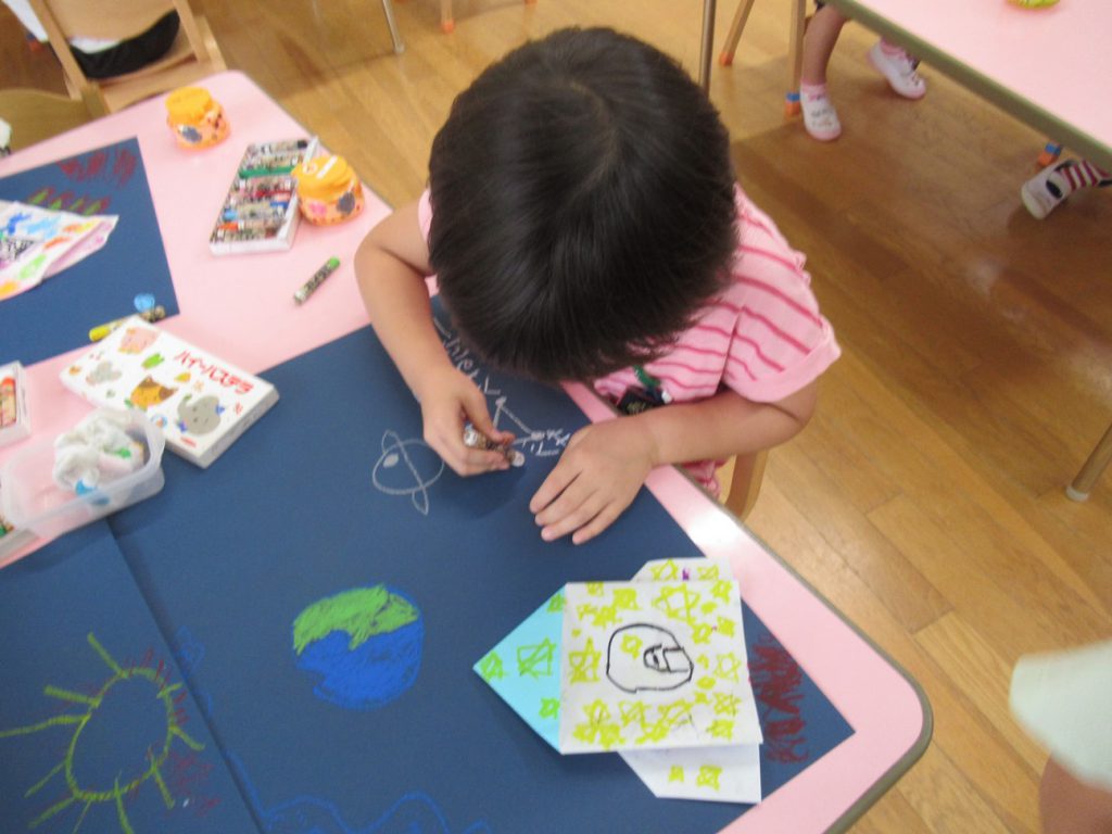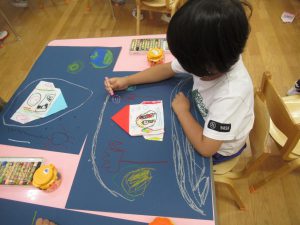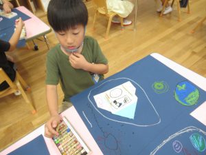 紺地の色画用紙に、宇宙の絵を描いていきました。