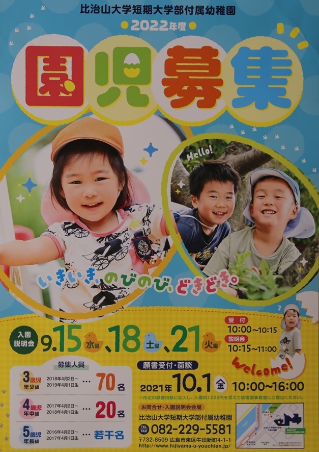 2021.08.23 未分類 2022(令和4)年度 入園説明会のお知らせ 2021年 8月 みなさま、こんにちは!9月には、2022(令和4)年度 入園説明会を行います。 当日は、入園願書、パンフレットなどを配付いたします。(事前予約の必要はありません) 在園児の園生活の様子が載っています。https://youtu.be/GonUcqMz2uAどうぞご覧ください! 一覧に戻る