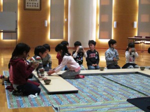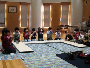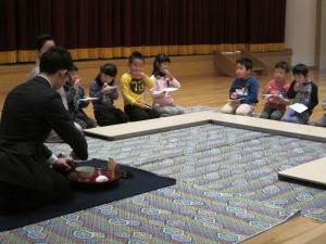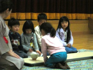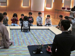 先生と、お弟子様がお見えになり、子どもたちに作法など教えてくださいます。