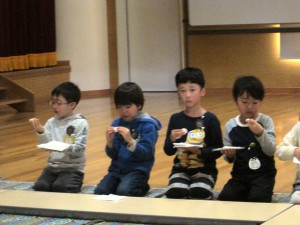 いつも親しんでいるホールですが、子どもたちは、この独特な雰囲気に緊張の面持ち