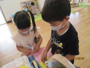 遊びを通して、言葉のやりとりも