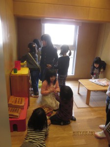 食後は、在園児の部屋の魅力的なおもちゃで遊びました。