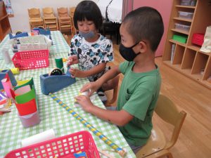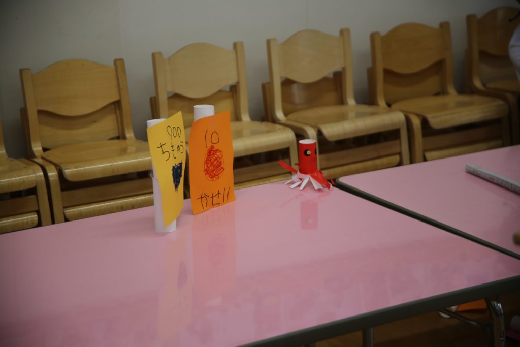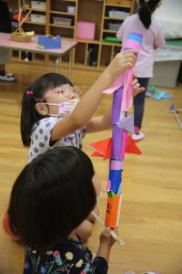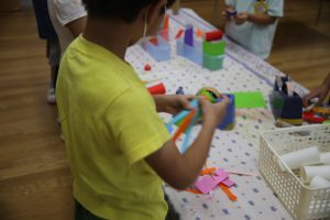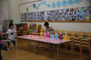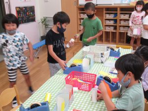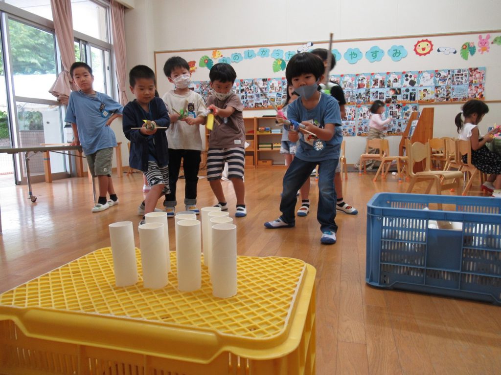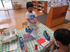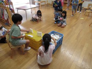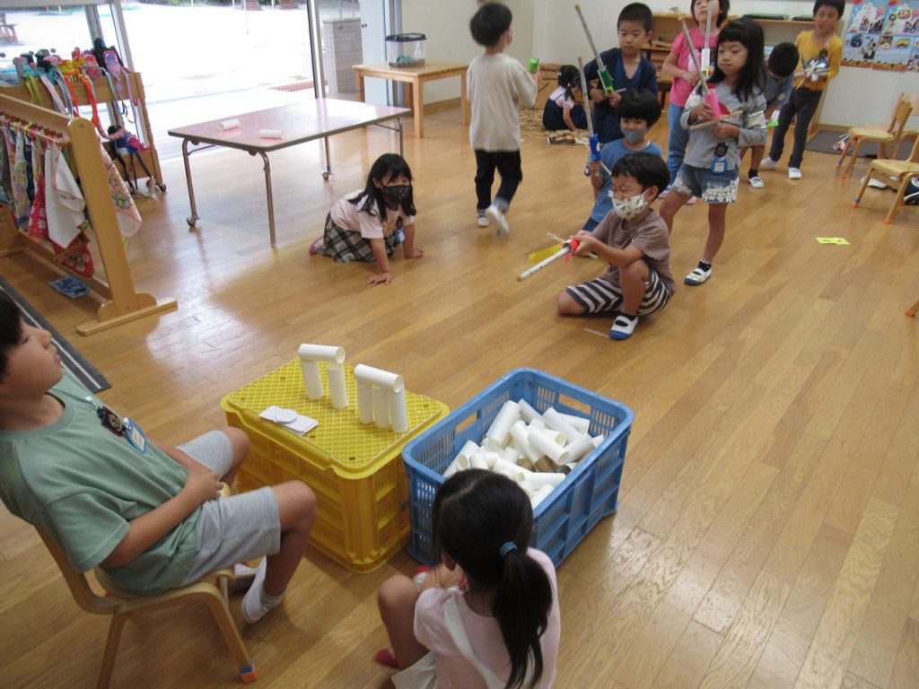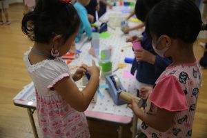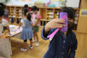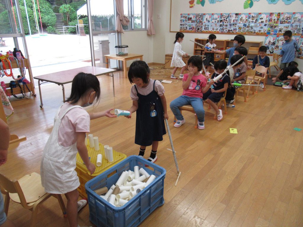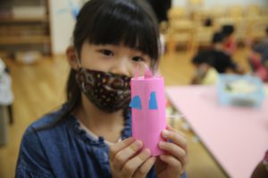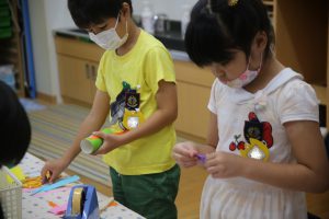夏休み期間中、廃材トイレットペーパーの芯集めの
