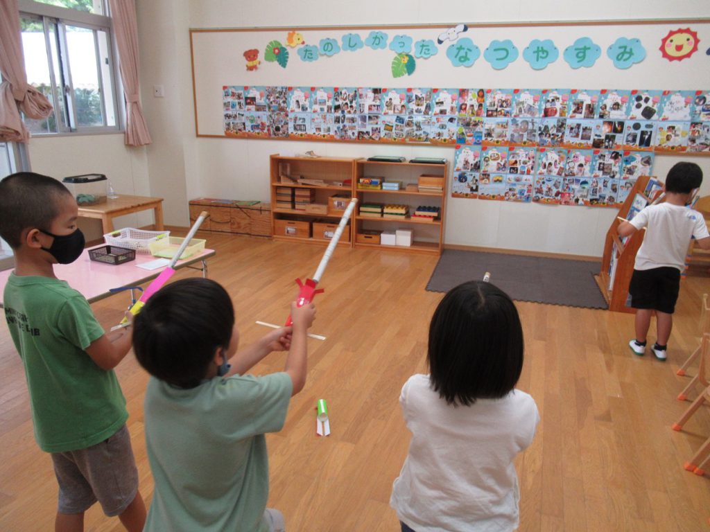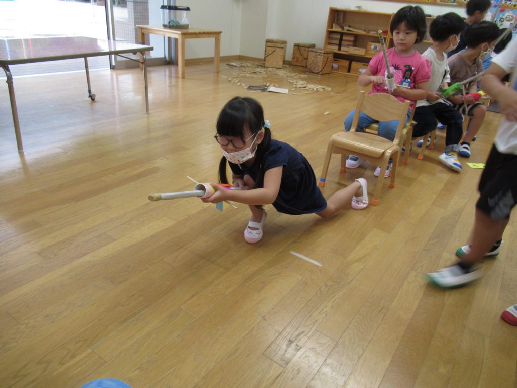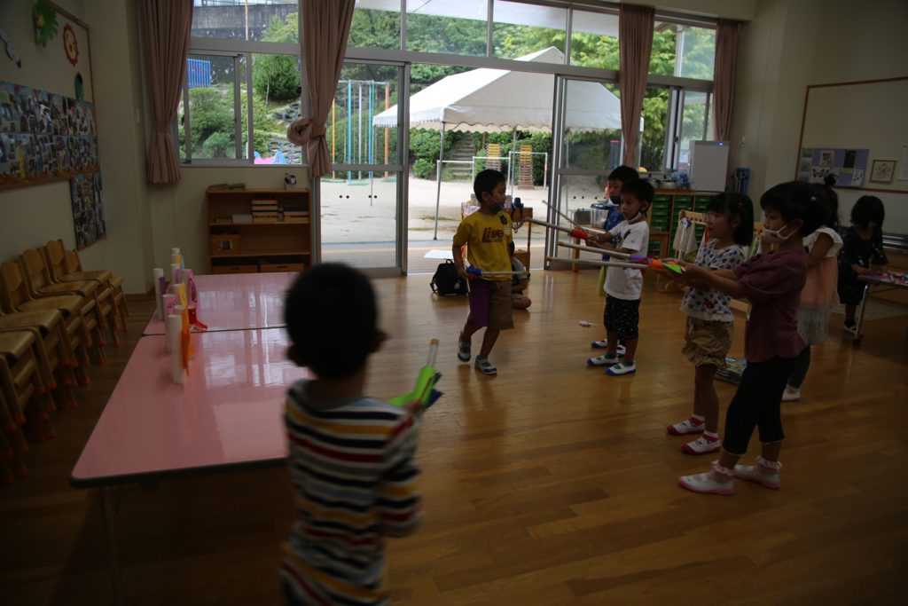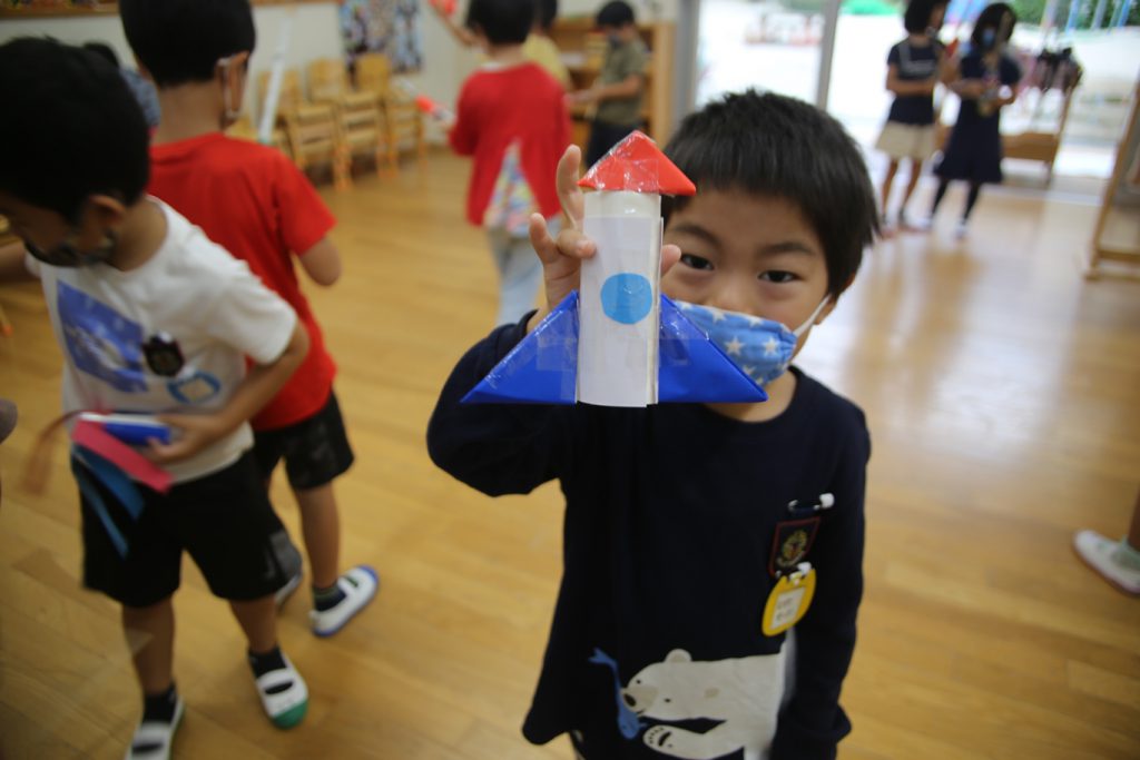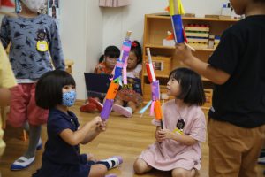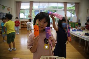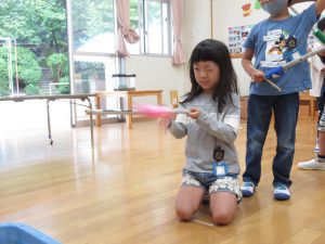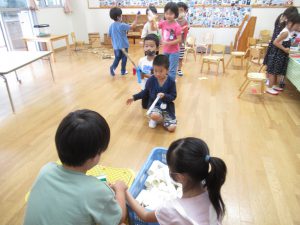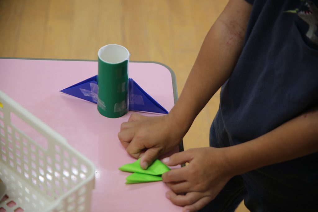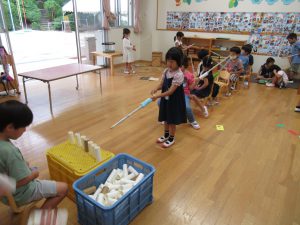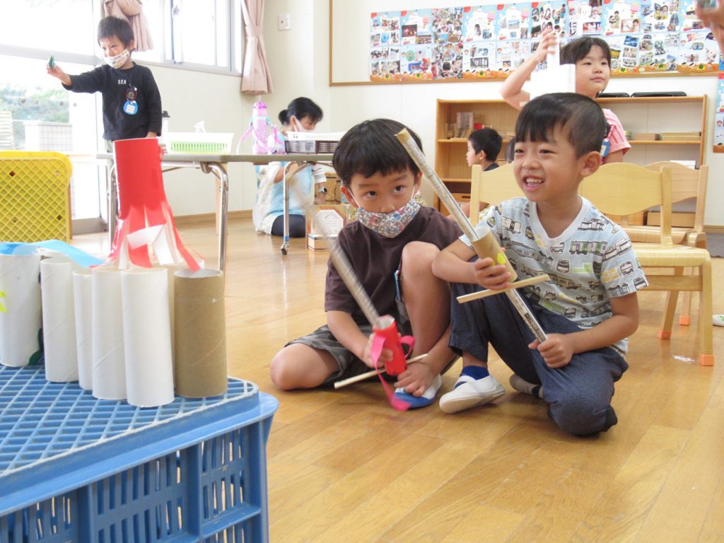 夏休み期間中、廃材トイレットペーパーの芯集めの