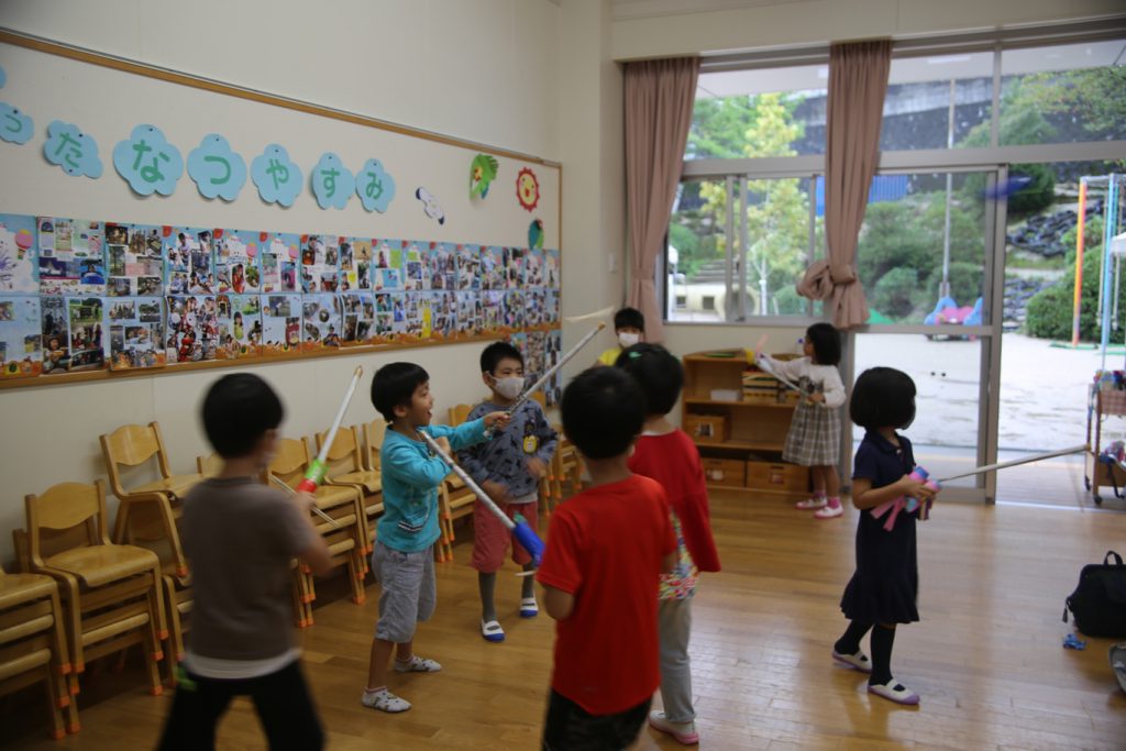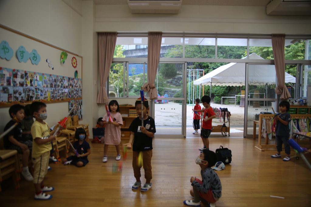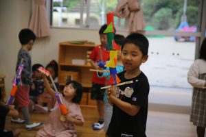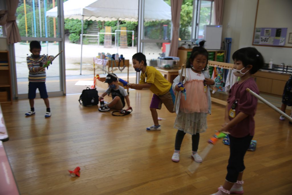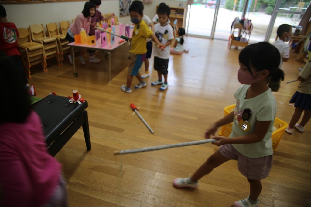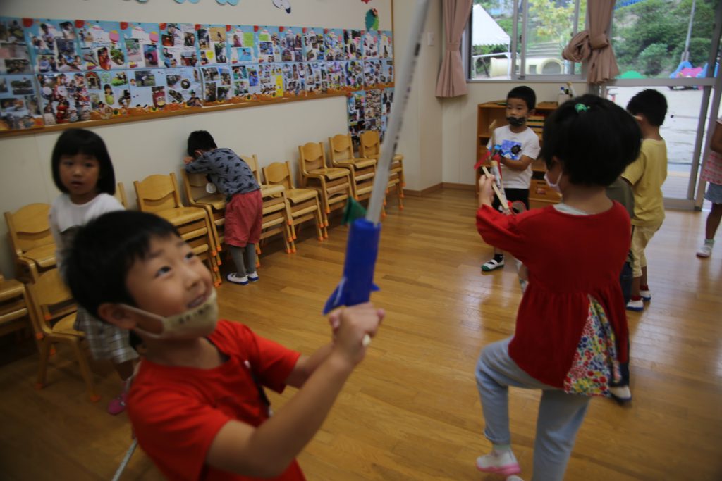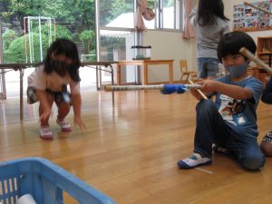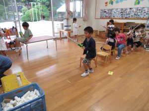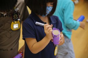 夏休み期間中、廃材トイレットペーパーの芯集めの