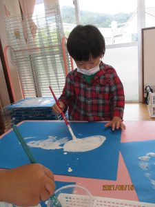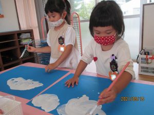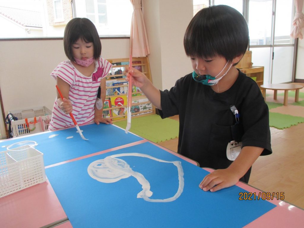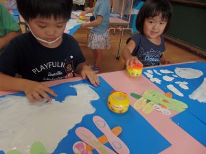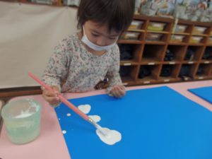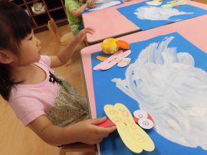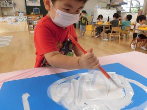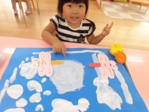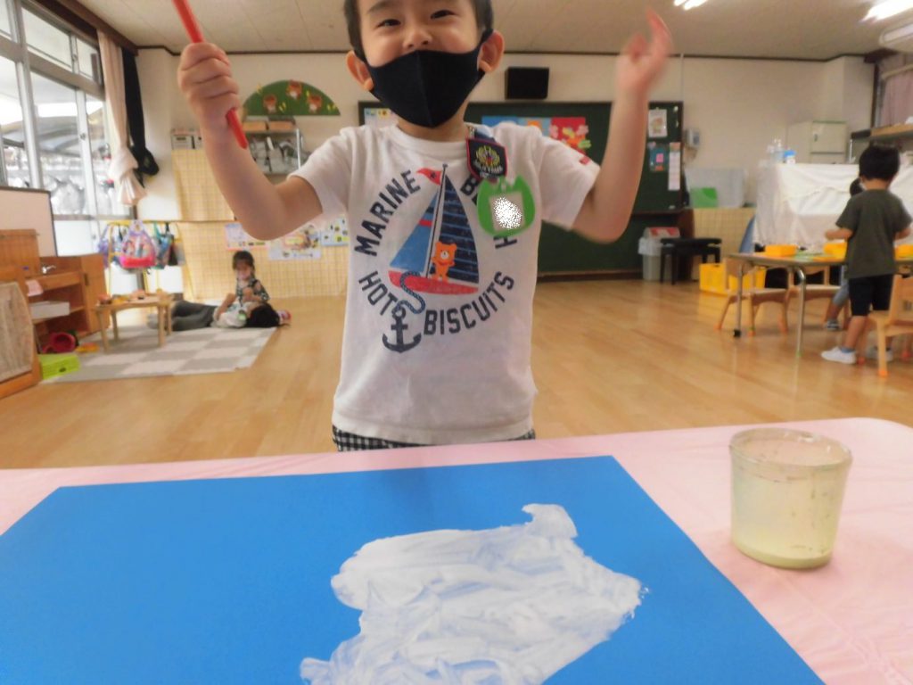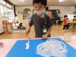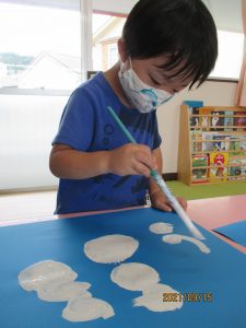 ぽっかり浮かぶ大きな雲を描きましたよ!