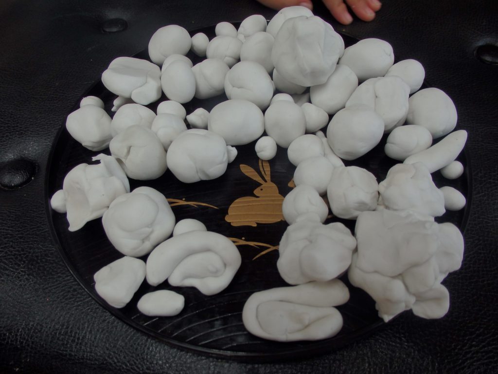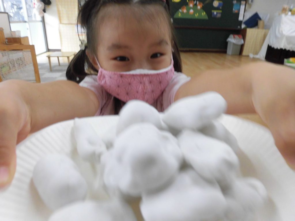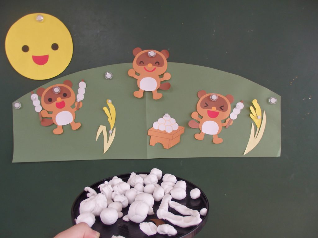 粘土で、月見だんごを作ったり、