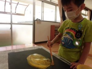その経験を、今回は絵の具で、