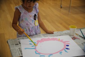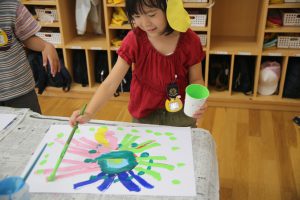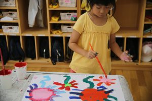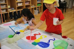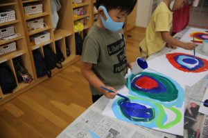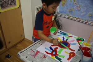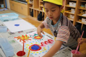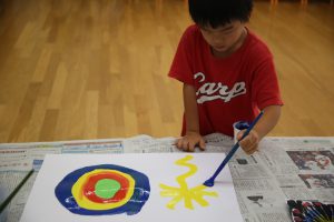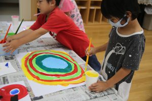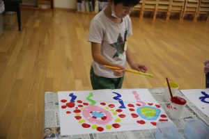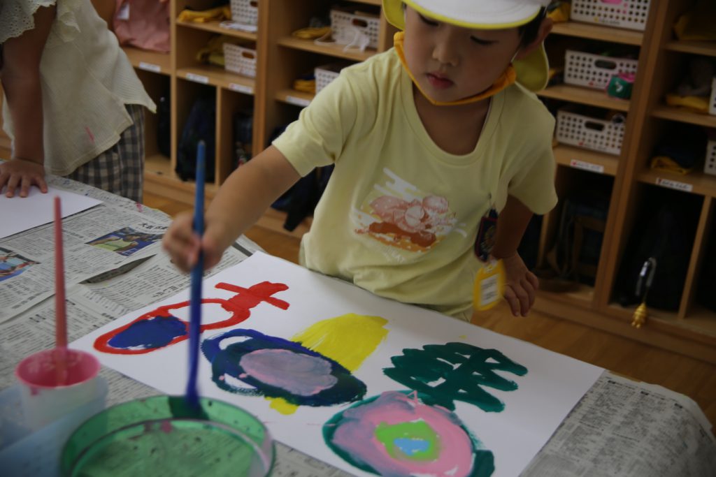 まず、一番目の工程は、白画用紙に絵の具で、