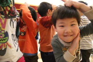 今日は2月3日、幼稚園では恒例の節分会が行われます。