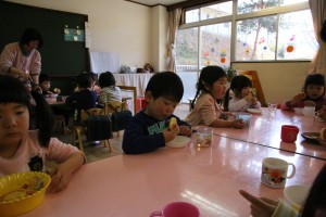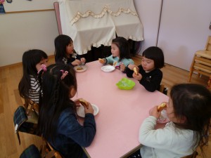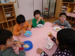 各クラスに戻ってからは、幸せのおまんじゅうを頂きました。