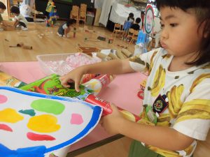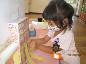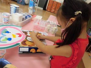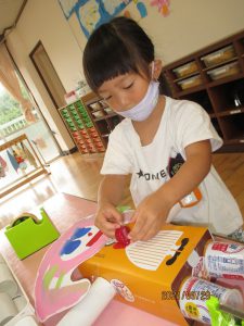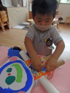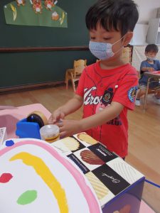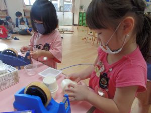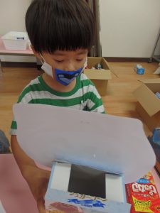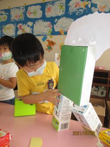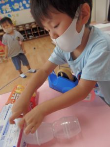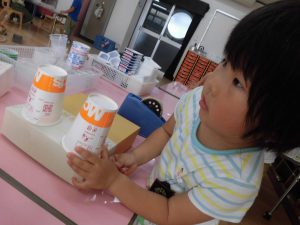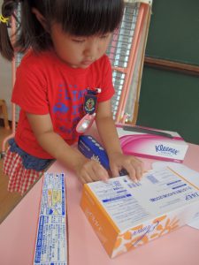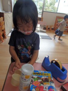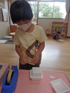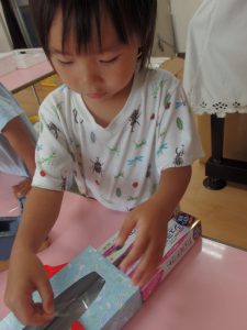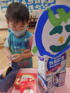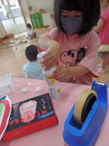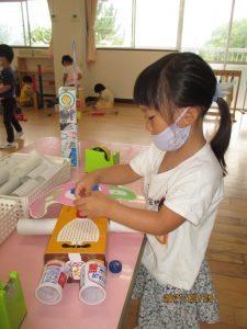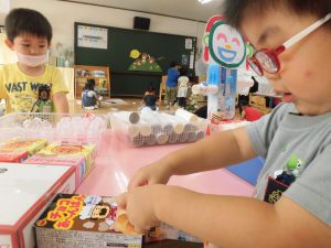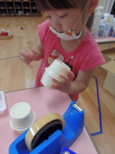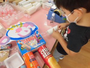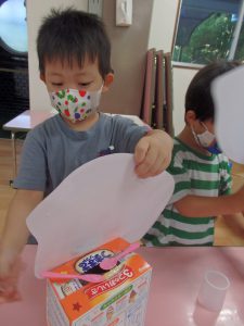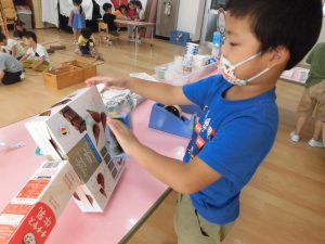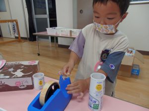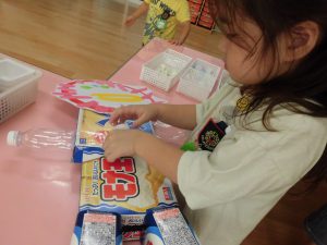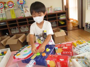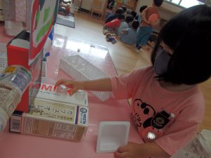 どの箱を使おうかな? 手は、ゼリーカップがいいかな?