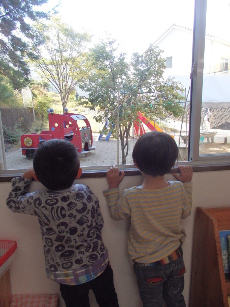 年少さんと、年中児・年長児は、園舎が少し離れているため、