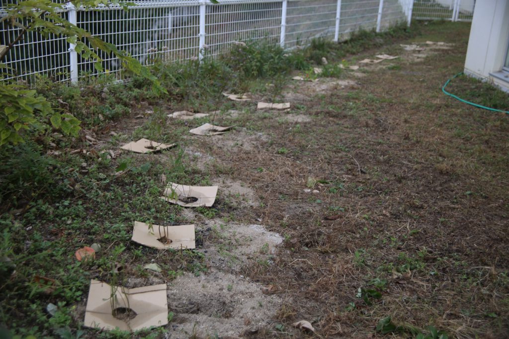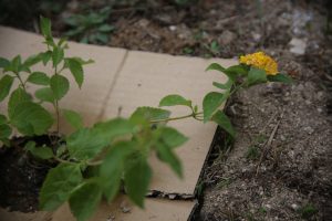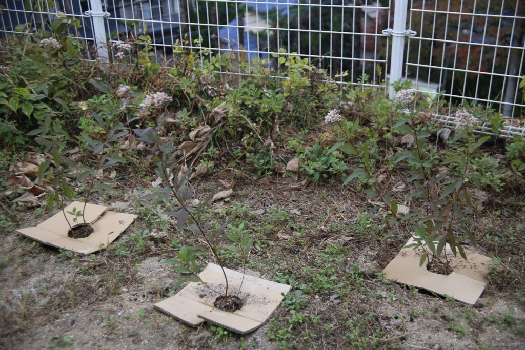 草除けのダンボールをかぶせておこう!
