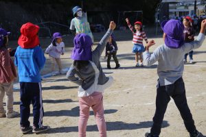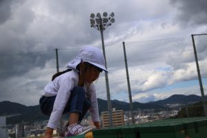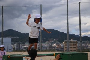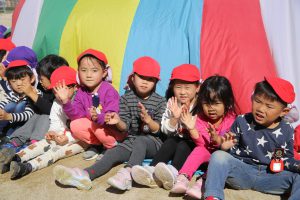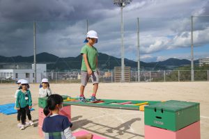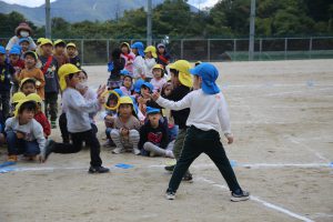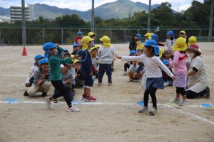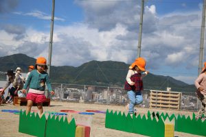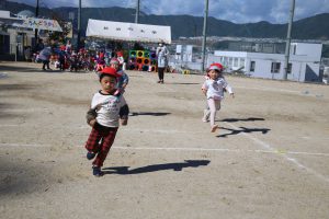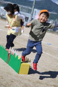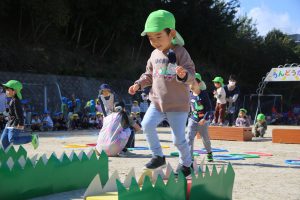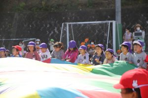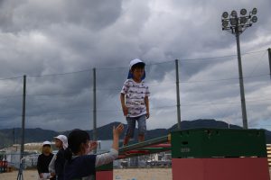 (正面から、年長児の迫力・頑張りに圧倒…)