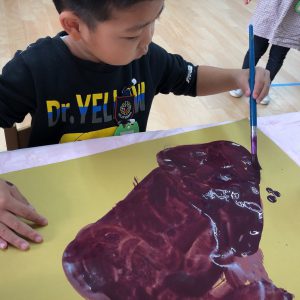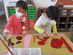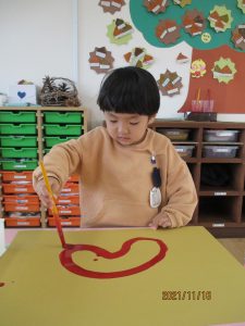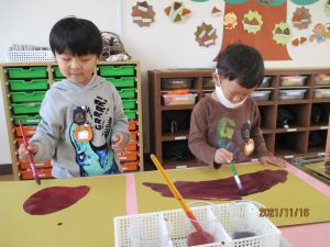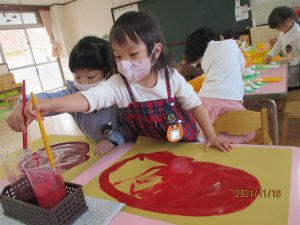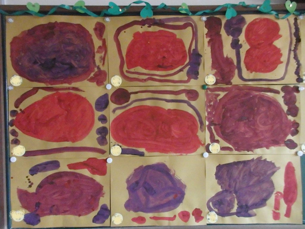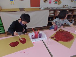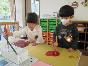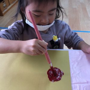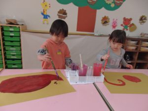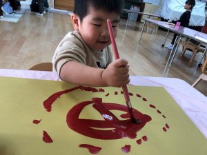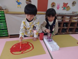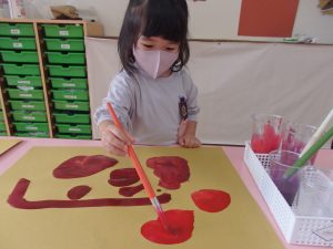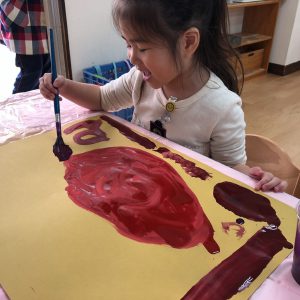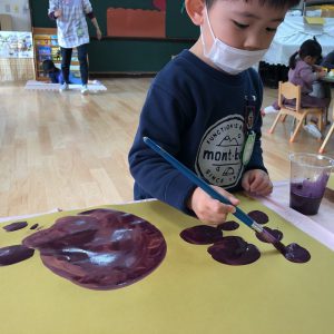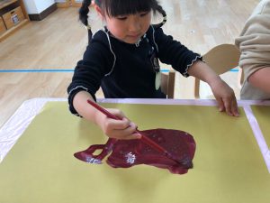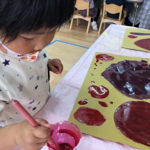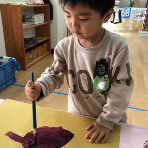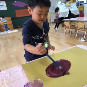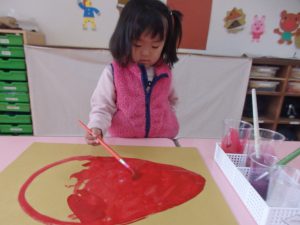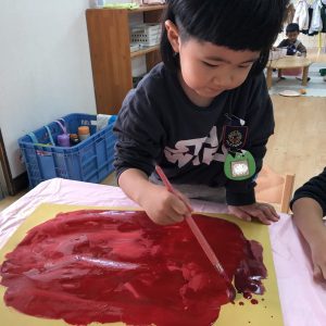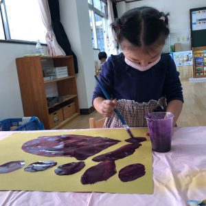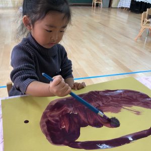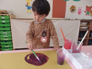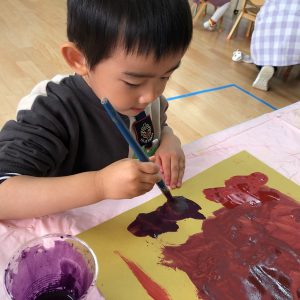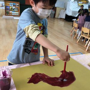 絵の具遊び、筆を使うこと…伸びやかな表現…