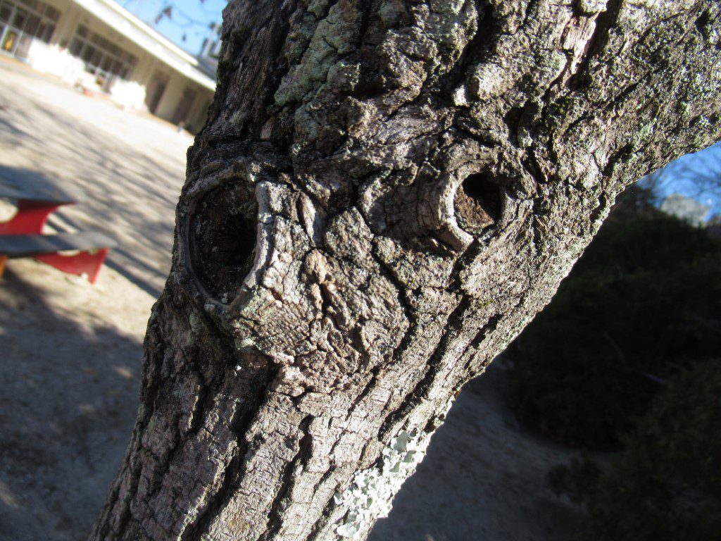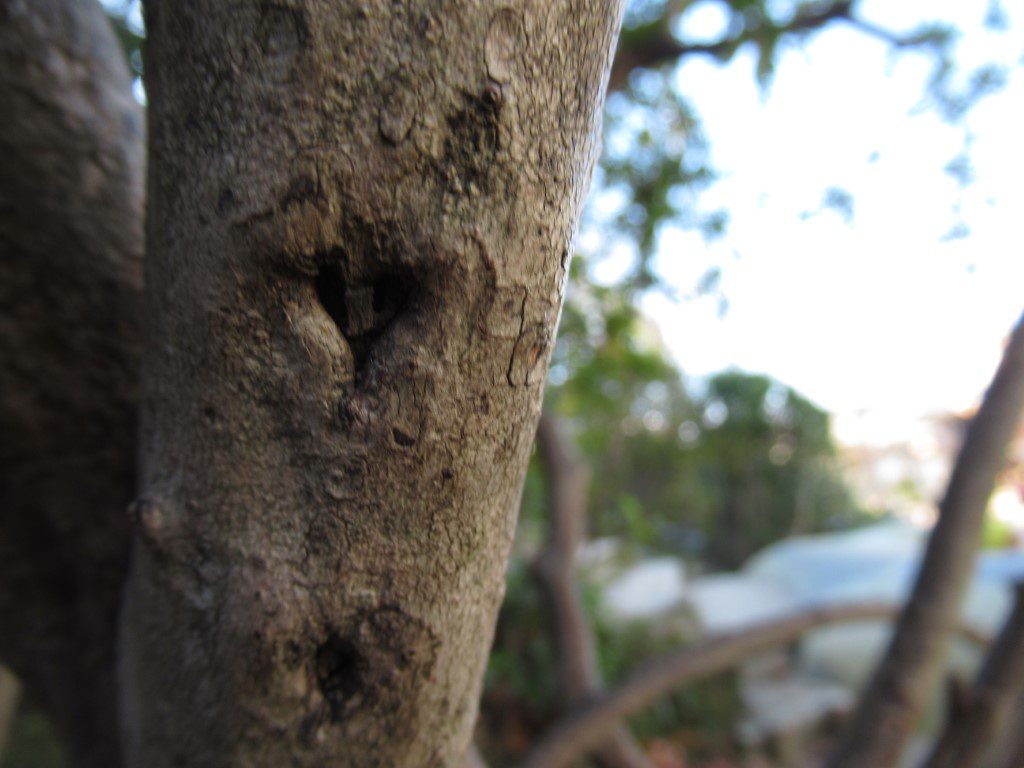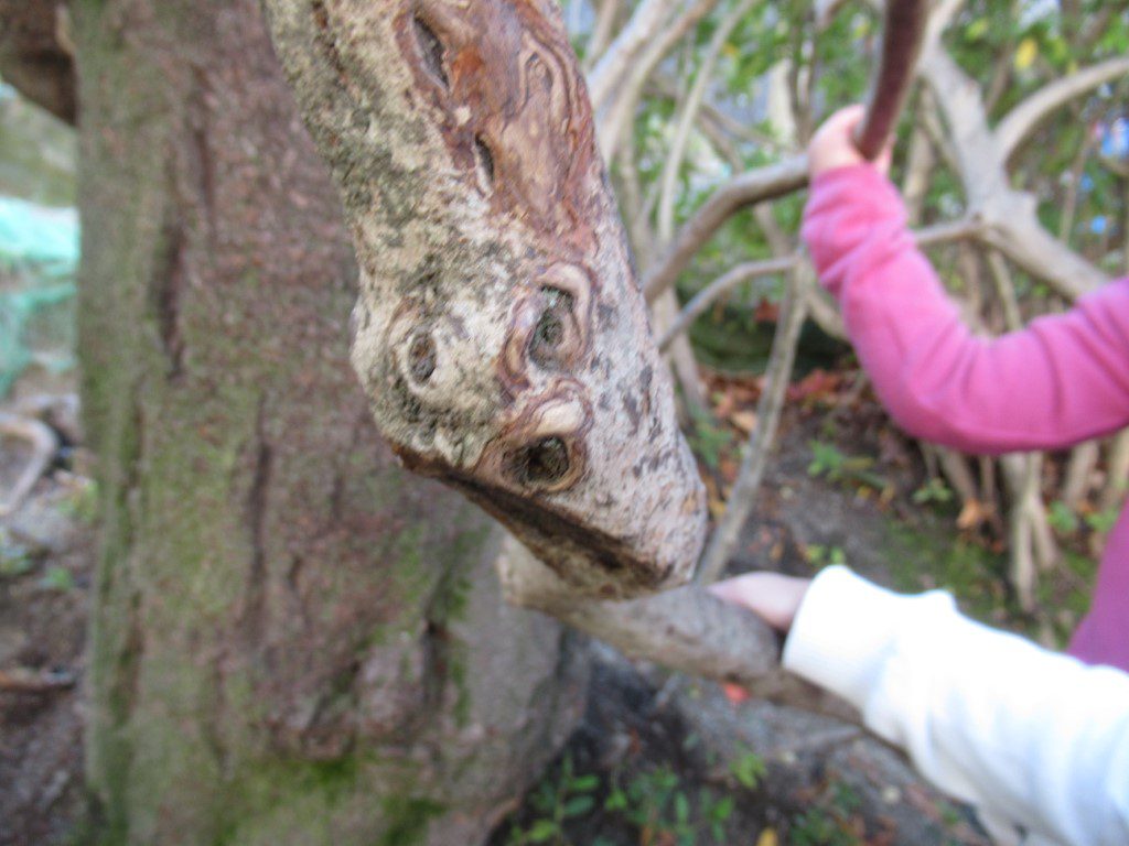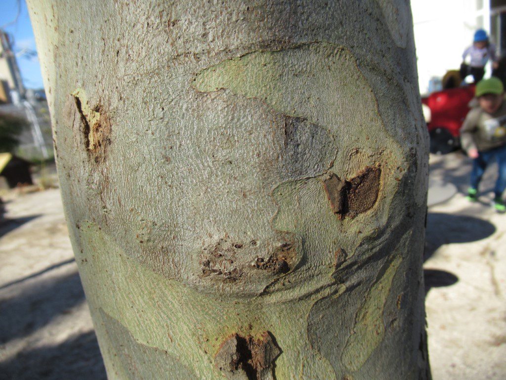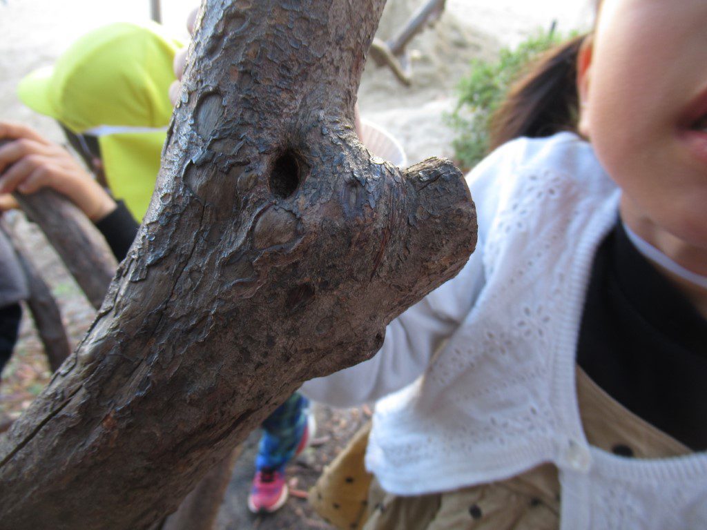 以下、子どもの見つけた幼稚園の木々の顔です。