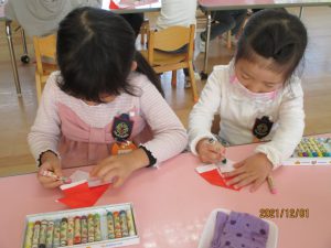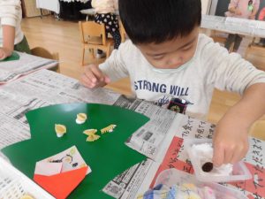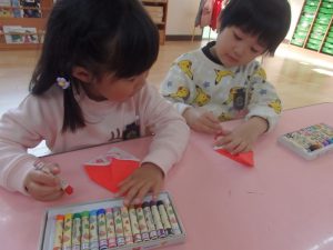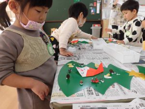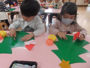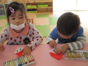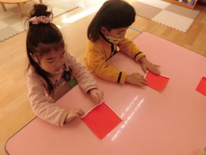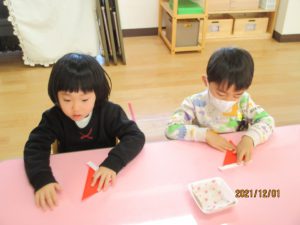 歌を歌ったり、折り紙でサンタさんも折ったりして、